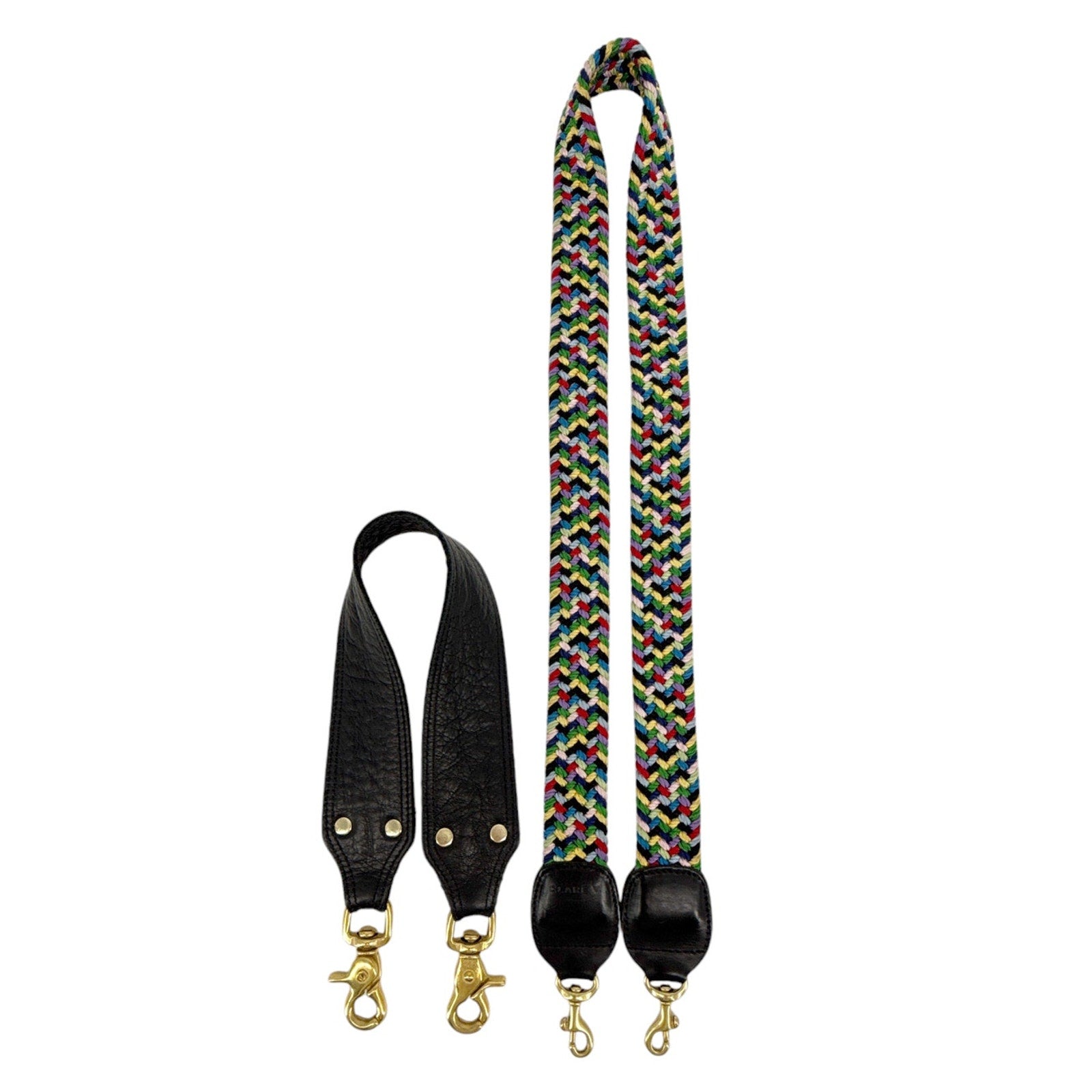 Crossbody strap: 44.5" x 1.75" leather caps & 1.25" strap