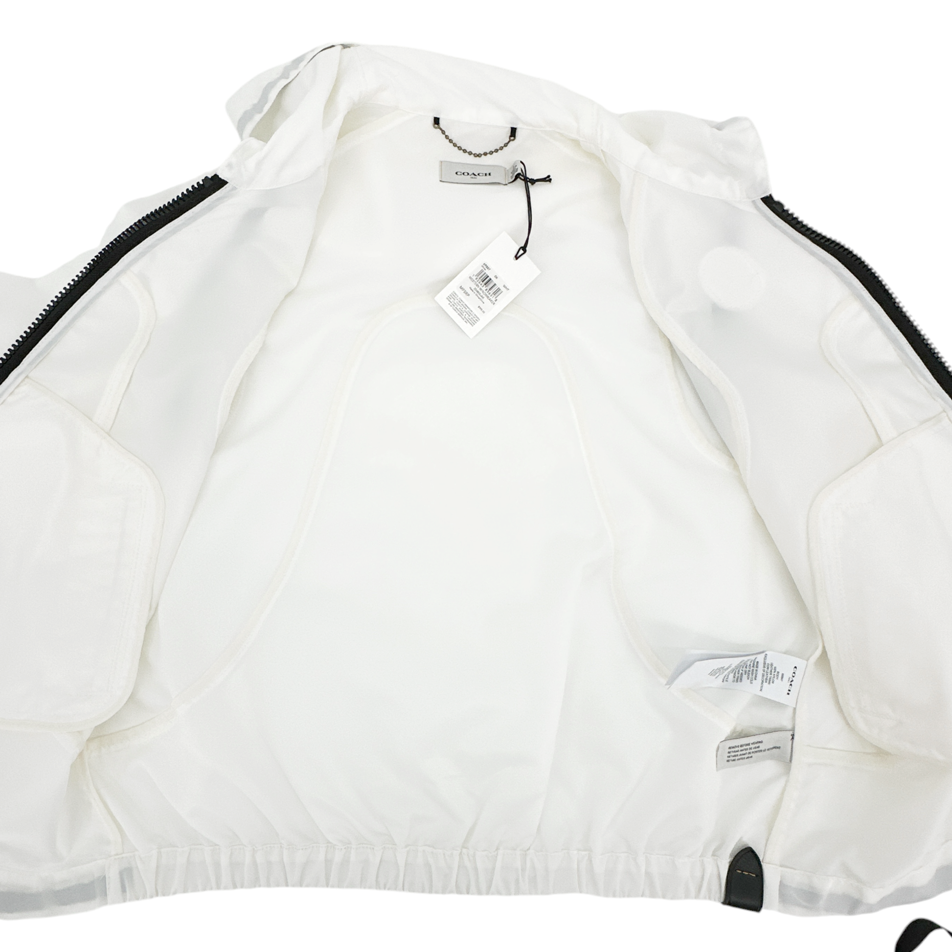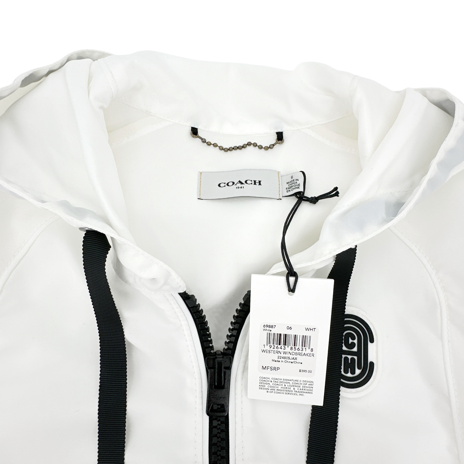 Featuring Western-inspired stitching, this slightly oversized windbreaker is crafted in lightweight, water-resistant nylon. The sporty hooded silhouette has slip pockets, drawstring pulls & is finished with our Coach retro graphic.