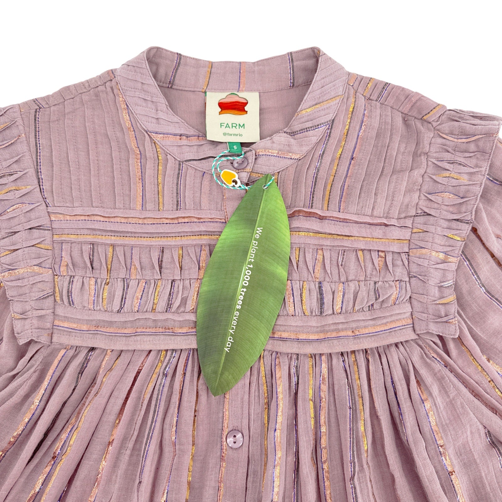 FARM RIO Pleated Yoke Blouse Light Pink S