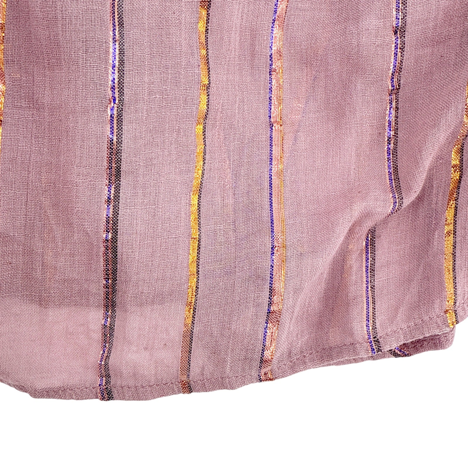Embrace a tender touch with the Light Pink Pleated Yoke Long Sleeve Blouse, where elegance meets comfort. This delicate high neckline piece is adorned with intricate pleating and a yoke panel, creating a playfully sophisticated look. Its long sleeves billow into gentle cuffs, and the light pink hue is enlivened by subtle golden stripes, adding a dash of shimmer. Perfect for transitioning through seasons, it promises to uplift your ensemble with its breezy charm and unique design.