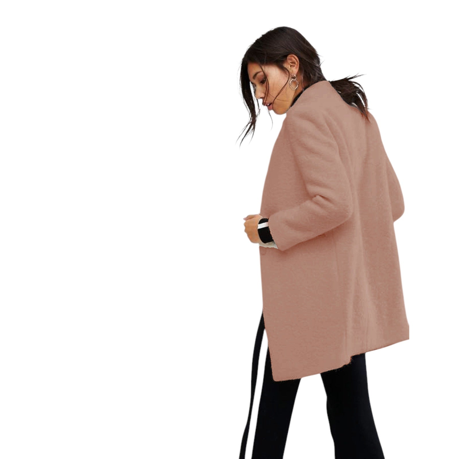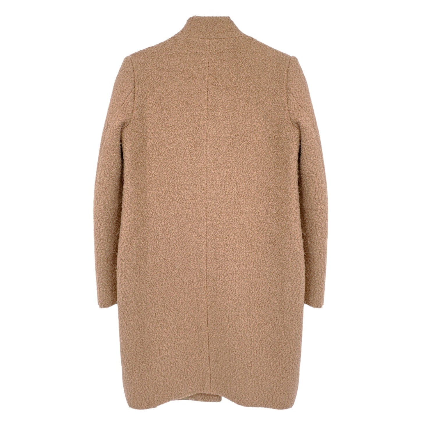 Coat by Gianni Feraud, boucle wool in a color that goes with everything. It has hues of khaki & salmon pink, Upturned collar, Button fastening, Functional pockets, Regular fit
