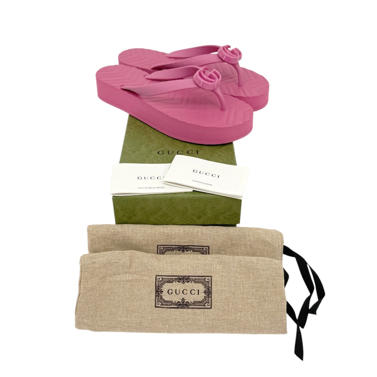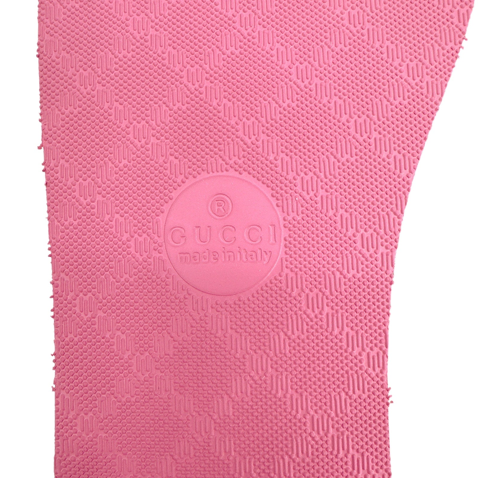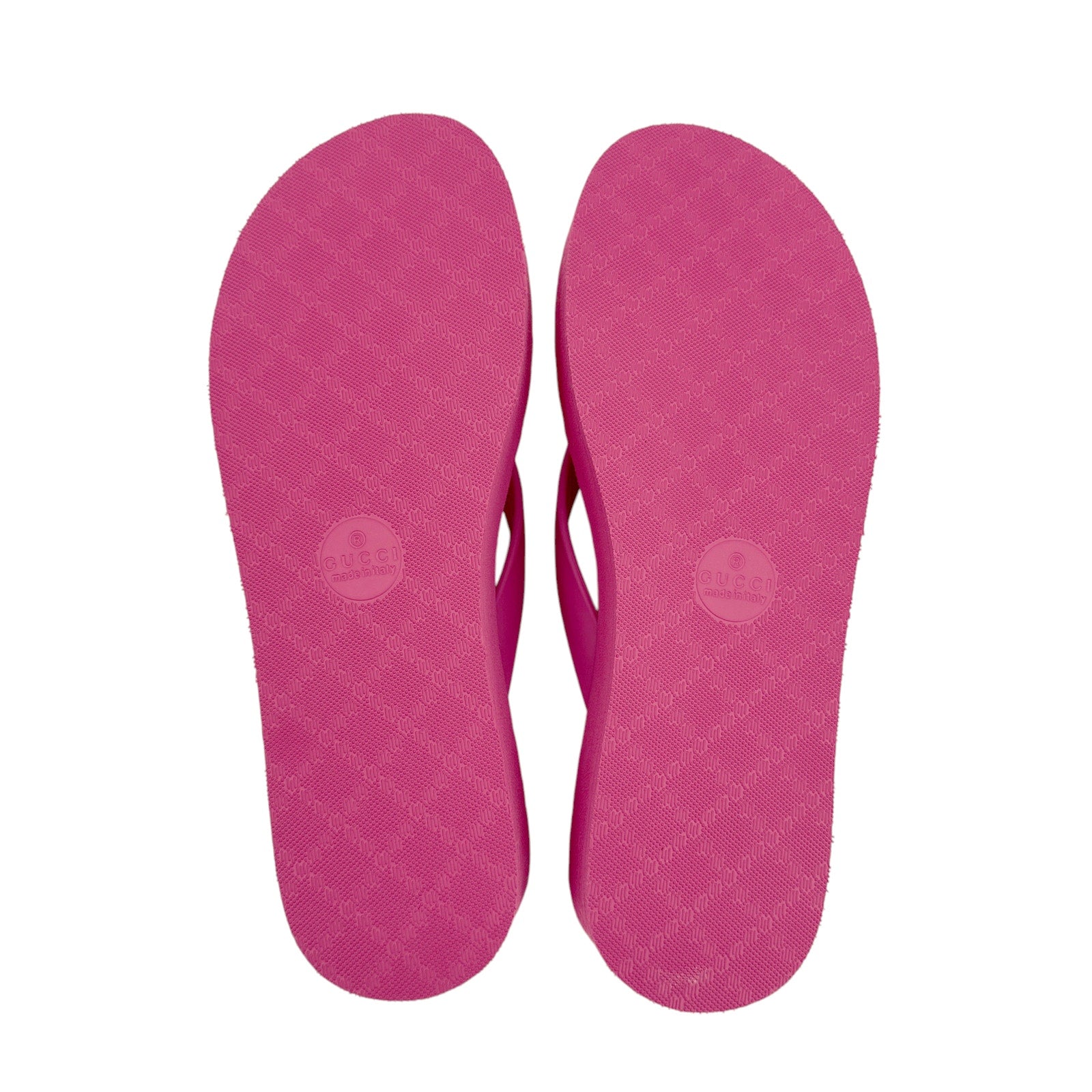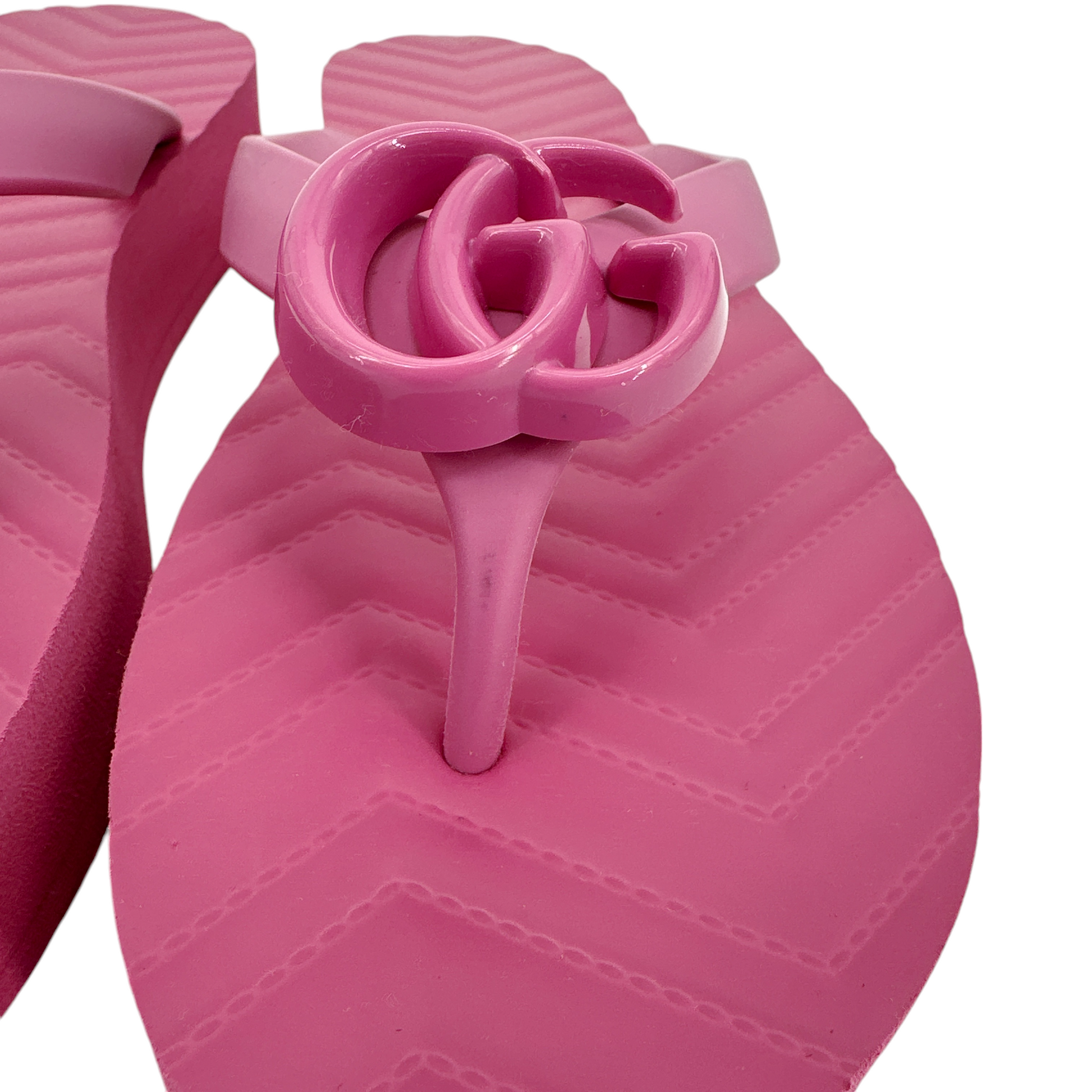 Textured patterns have become a mainstay of Gucci's most emblematic designs. Here, the recognizable motif is presented in pink rubber. The thong sandal is completed by the House's Double G hardware in tonal resin.