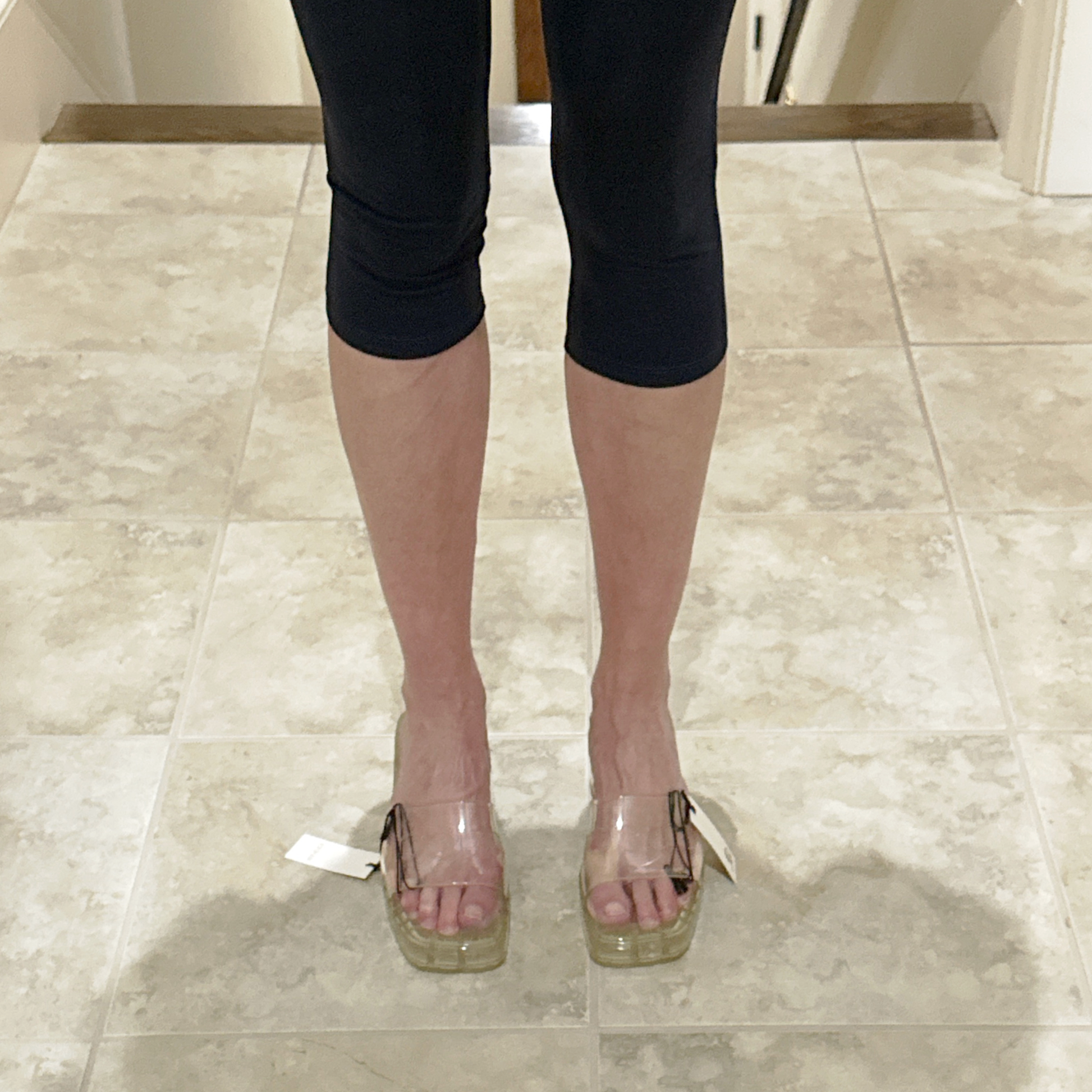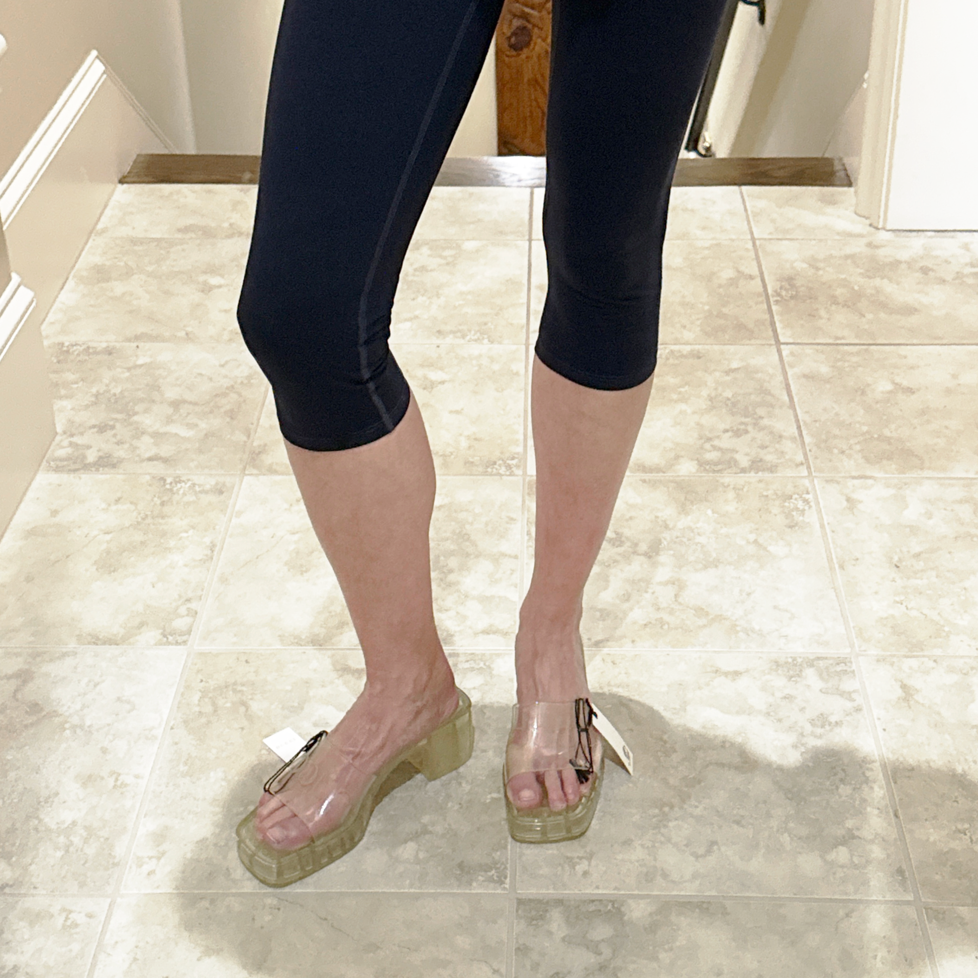 A playful twist on an essential style, the slide sandal is presented in transparent rubber. Recalling '90s style, a chunky heel & embossed logo add a retro appeal.