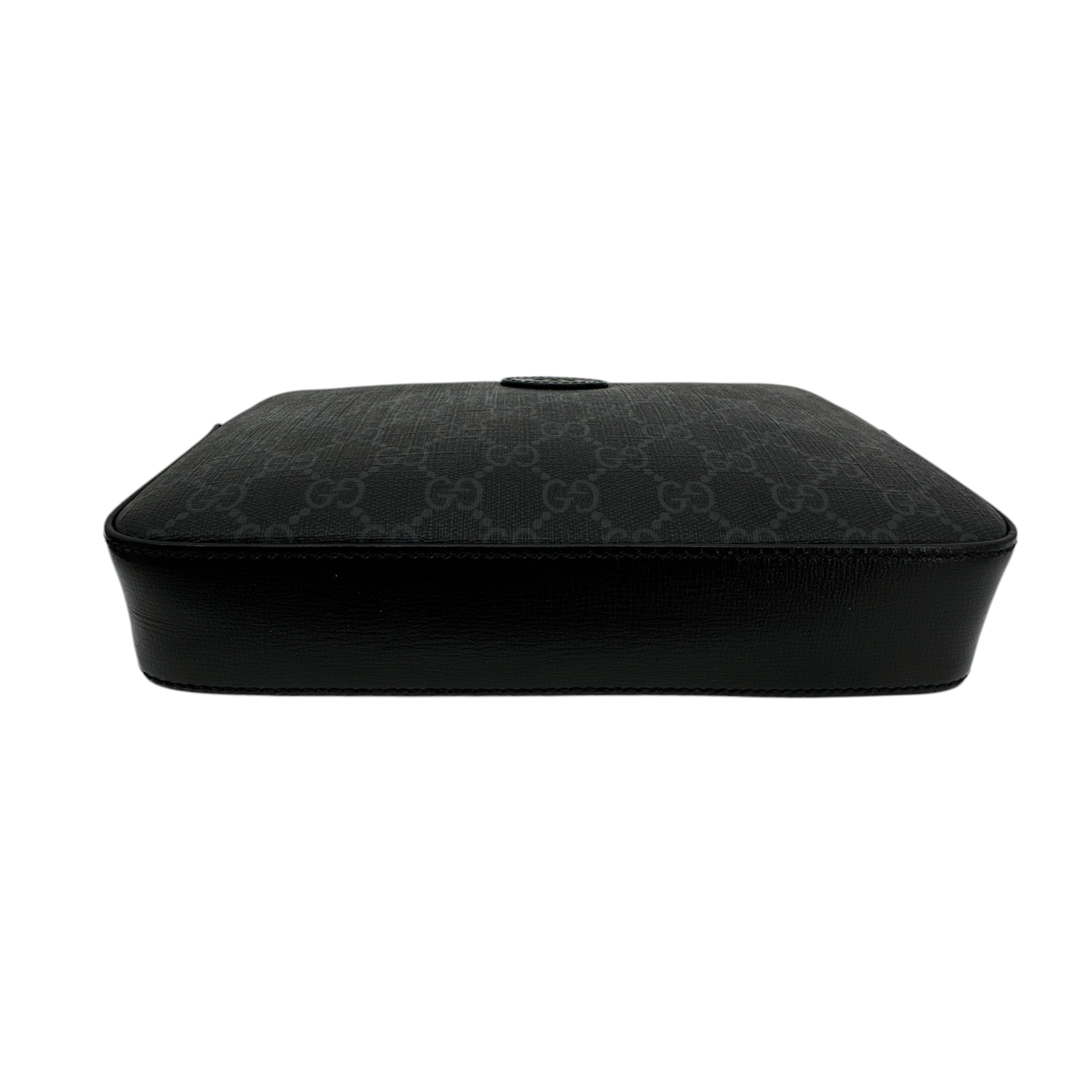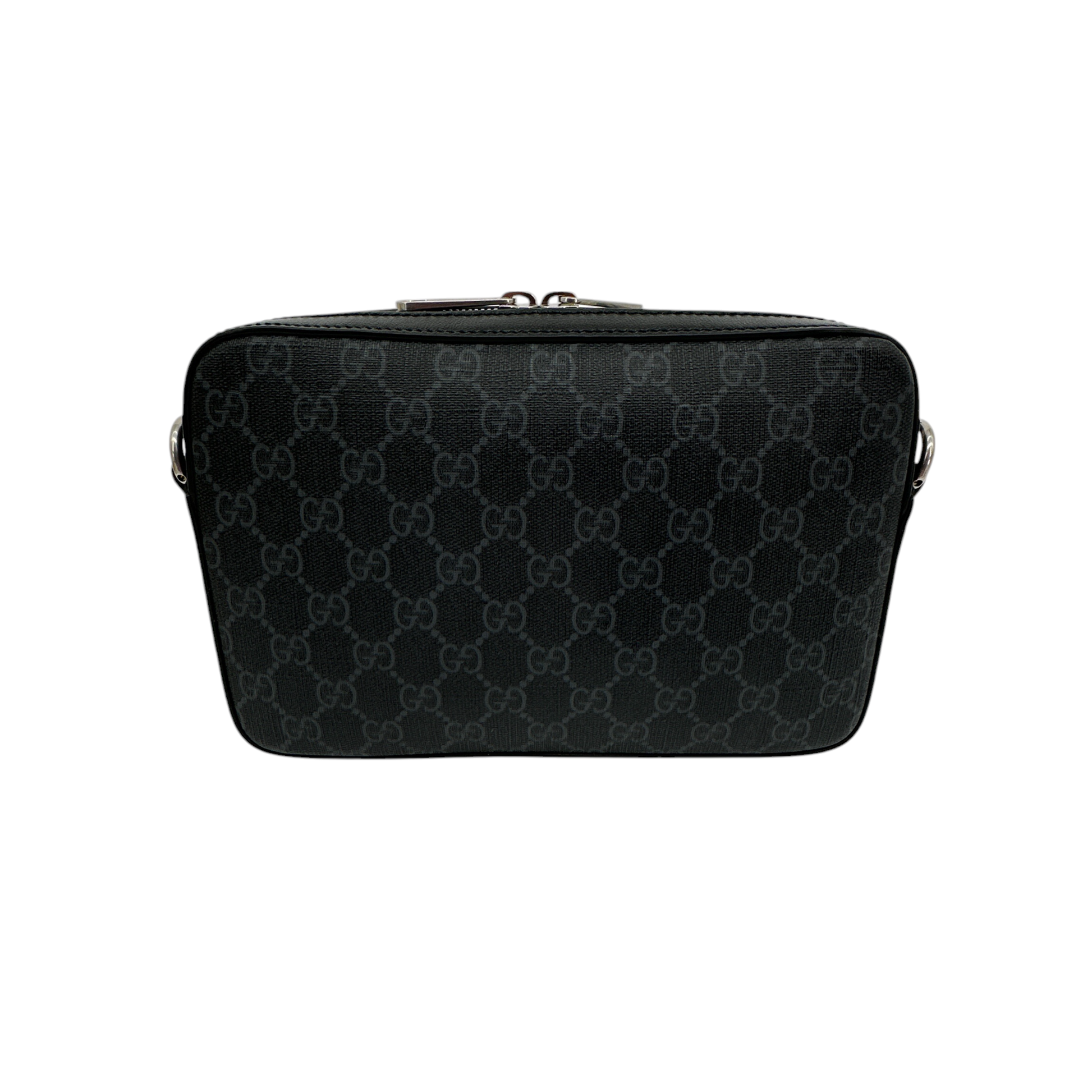 The signature GG Supreme canvas is an evergreen of the House. Soft & malleable, it is crafted from a coated microfiber fabric. Here it appears in a black variation for this crossbody bag. An Interlocking G tag completes the design with a distinctive logo feel.