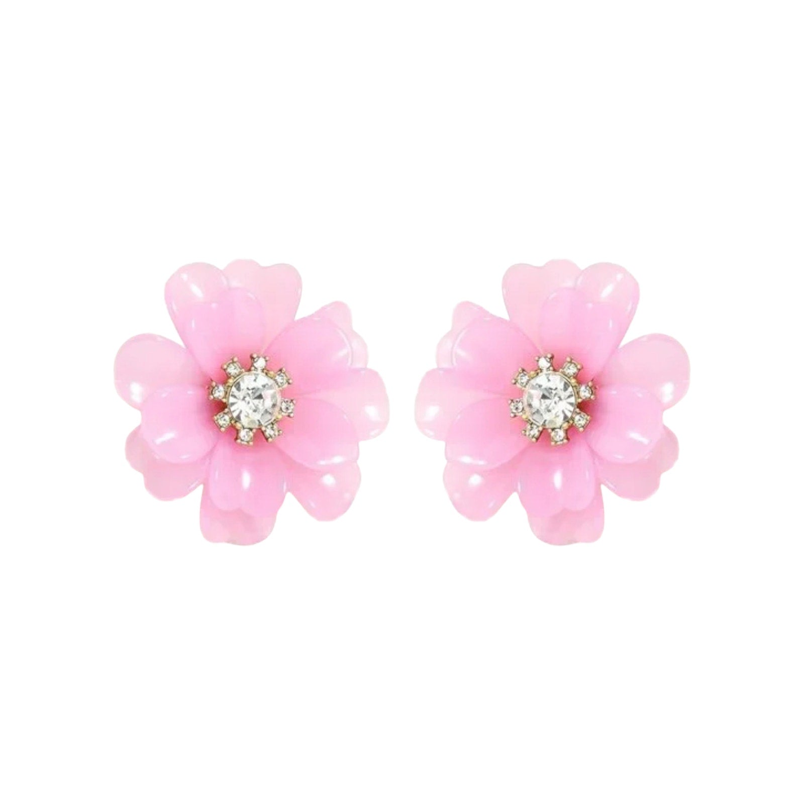 J.CREW Full Bloom Flower Earrings in Cool Pink