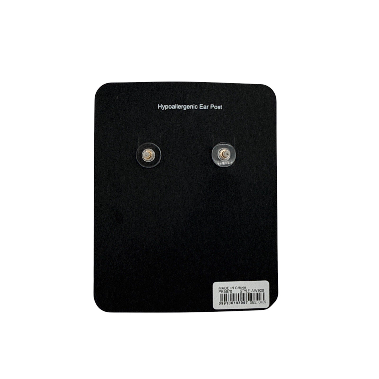 Gold plating, brass, zinc, resin, glass, titanium post, & cubic zirconia.