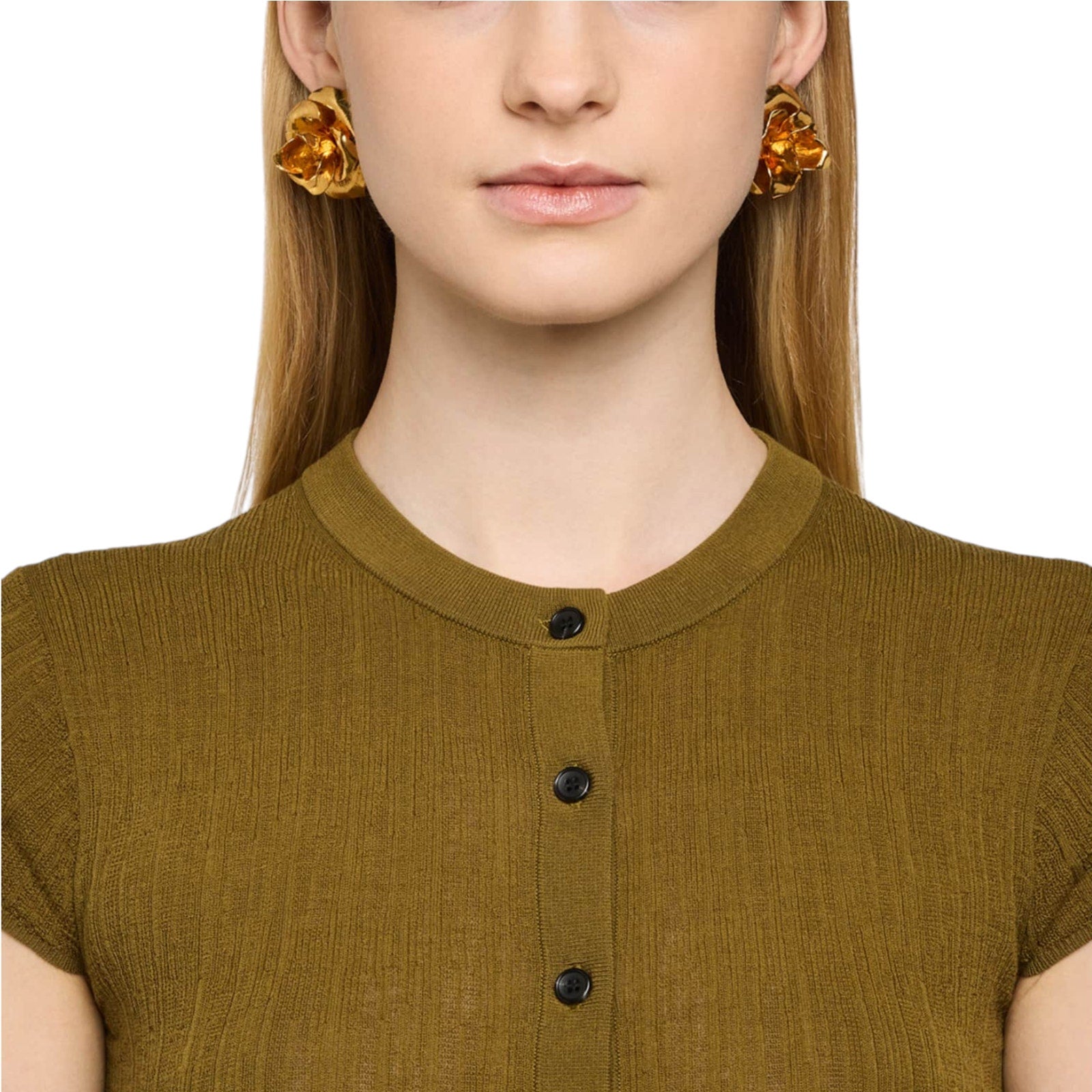 Delicate yet dashing, the Gold Tansy Earrings are sure to be a mainstay in your springtime style. Designed with sculptural lifelike details, each piece is made by hand in New York. These wearable golden blooms add sophistication to virtually any look. Gorgeous when paired with a flowing frock or a sleek blouse, you are sure to reach for these on repeat!