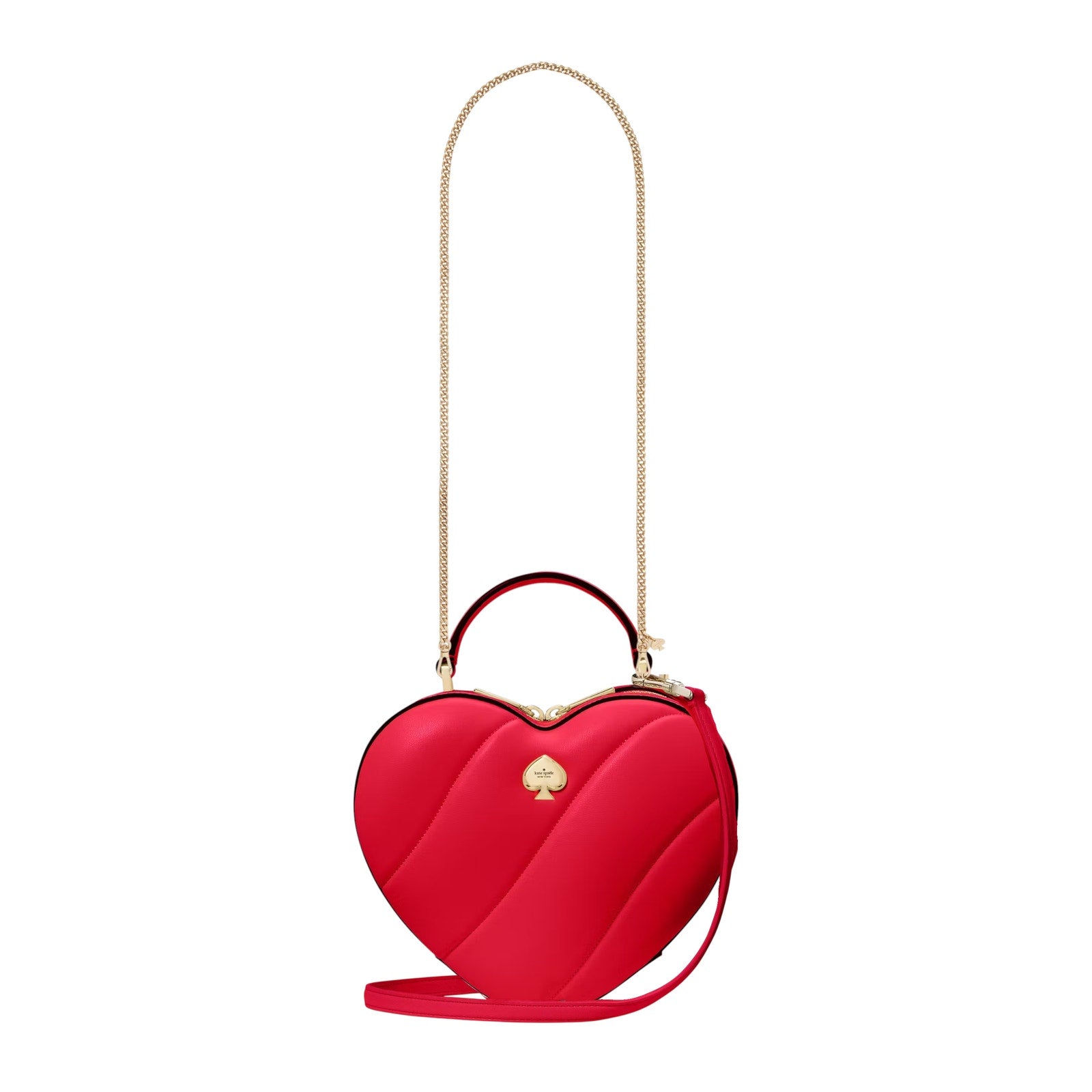 KATE SPADE New York Love Shack Quilted 3D Heart Crossbody in Ruby Red+Additional Chain Strap