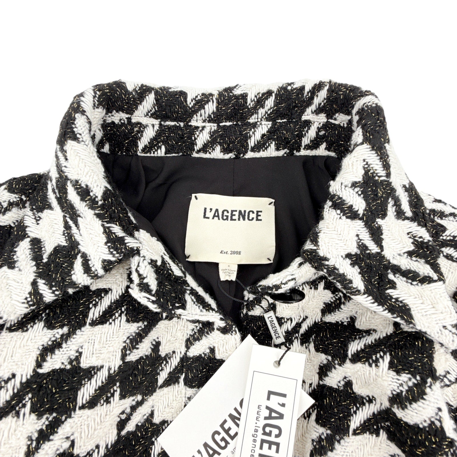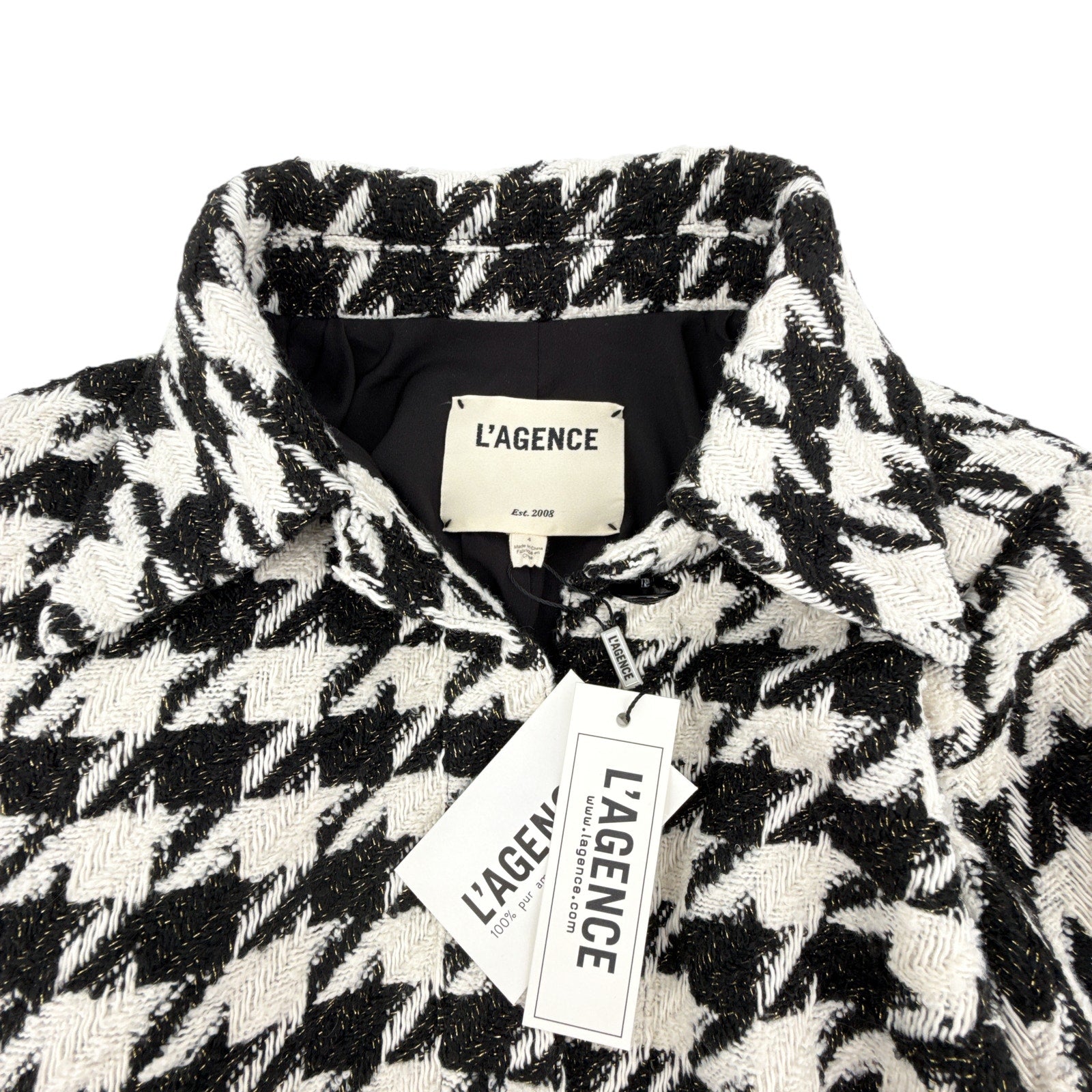 L'AGENCE Bridges Crop Jacket in Ecru Black & Gold Houndstooth 4|S