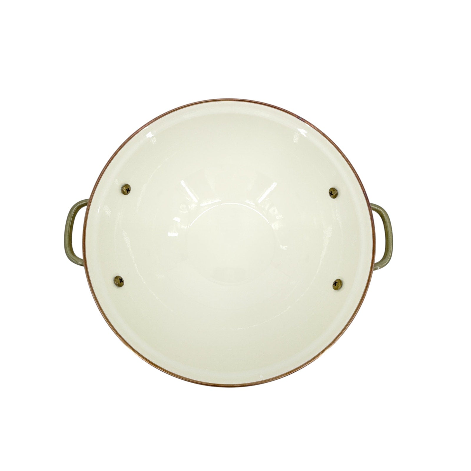 Heavy-gauge, hand-glazed steel underbody with hand-painted Sterling Checks, rimmed in bronzed stainless steel. Antiqued brass-finished handles.