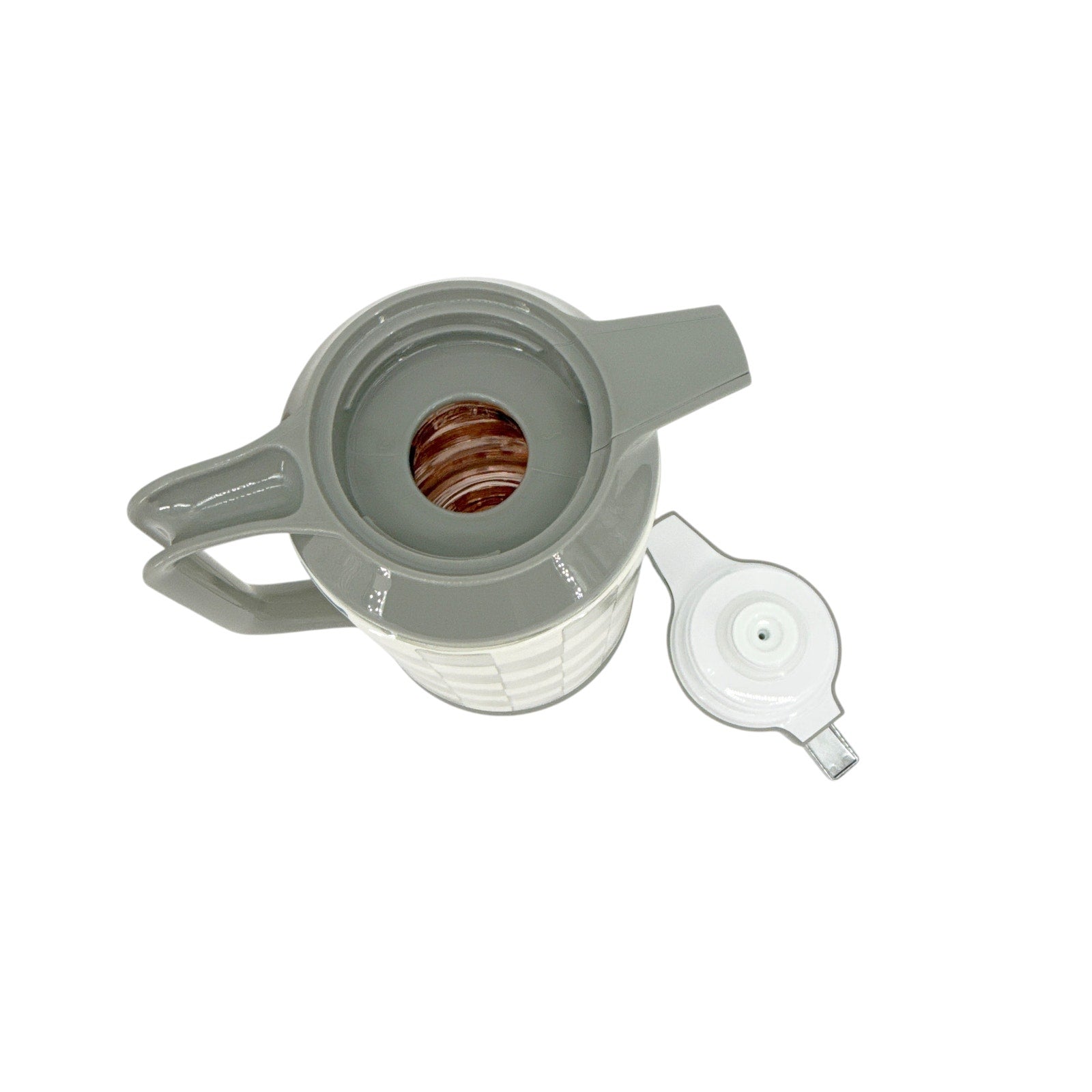 Pour out signature style with our Sterling Check® Coffee Carafe, which features our grey checks hand-painted on a heavy-gauge, hand-glazed steel underbody with a glass liner. With a five and a half-cup capacity, this carafe is sure to perk up even the dreariest Monday morning meetings.