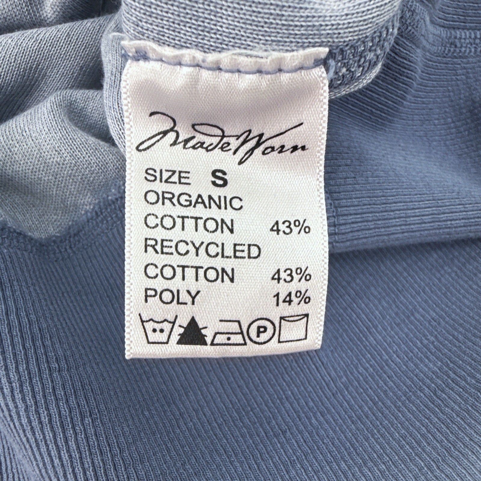 43% organic cotton, 43% recycled cotton, & 14% polyester