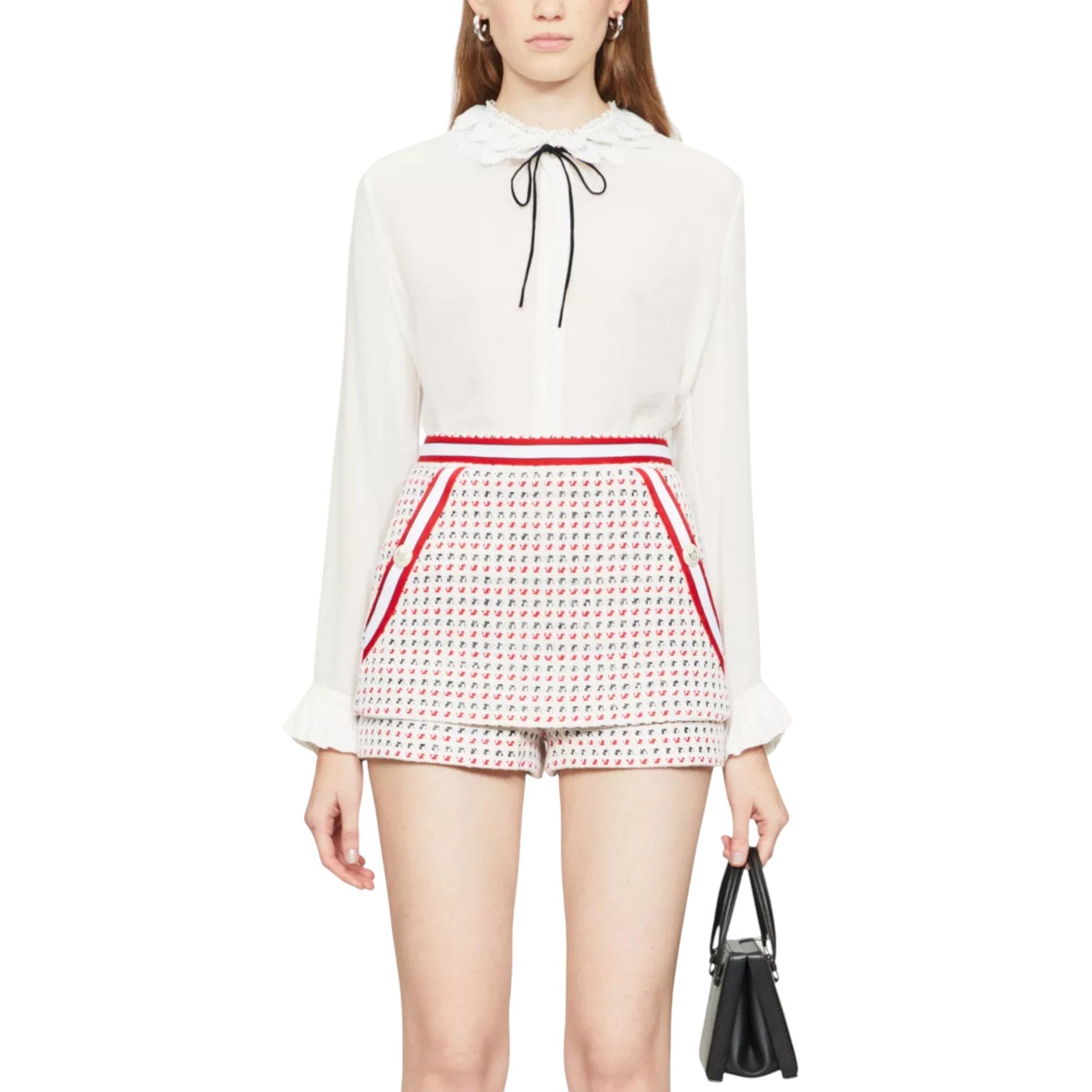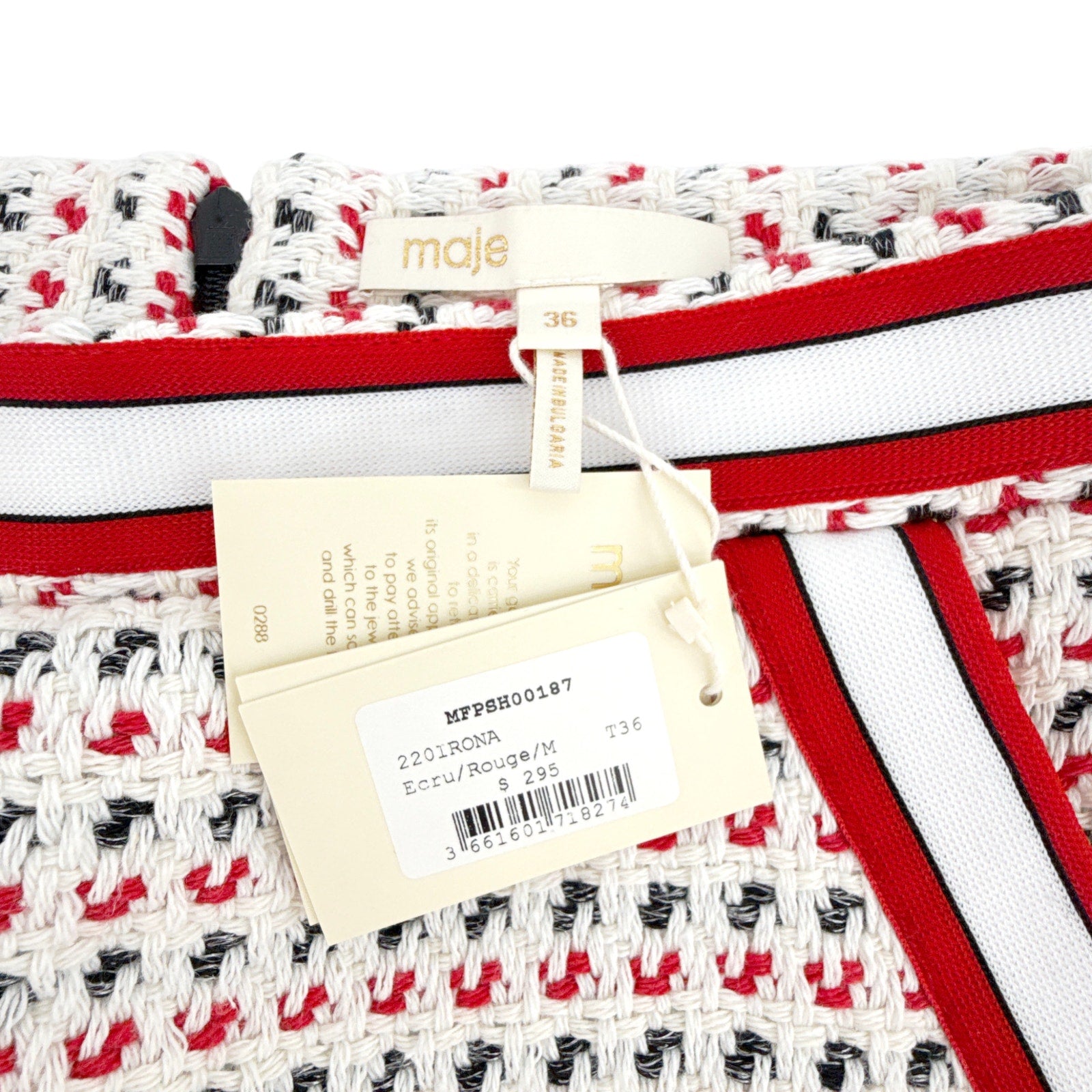 MAJE Irona Tweed Skort in Ecru, Red, & Navy FR36|S