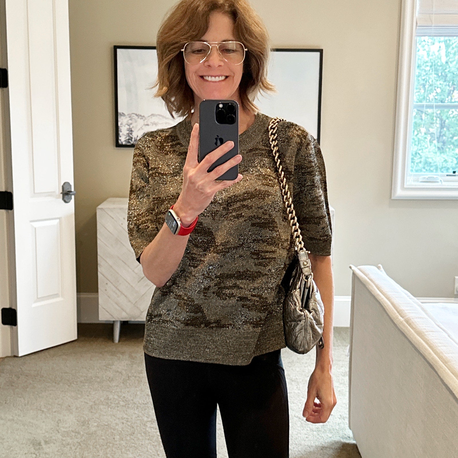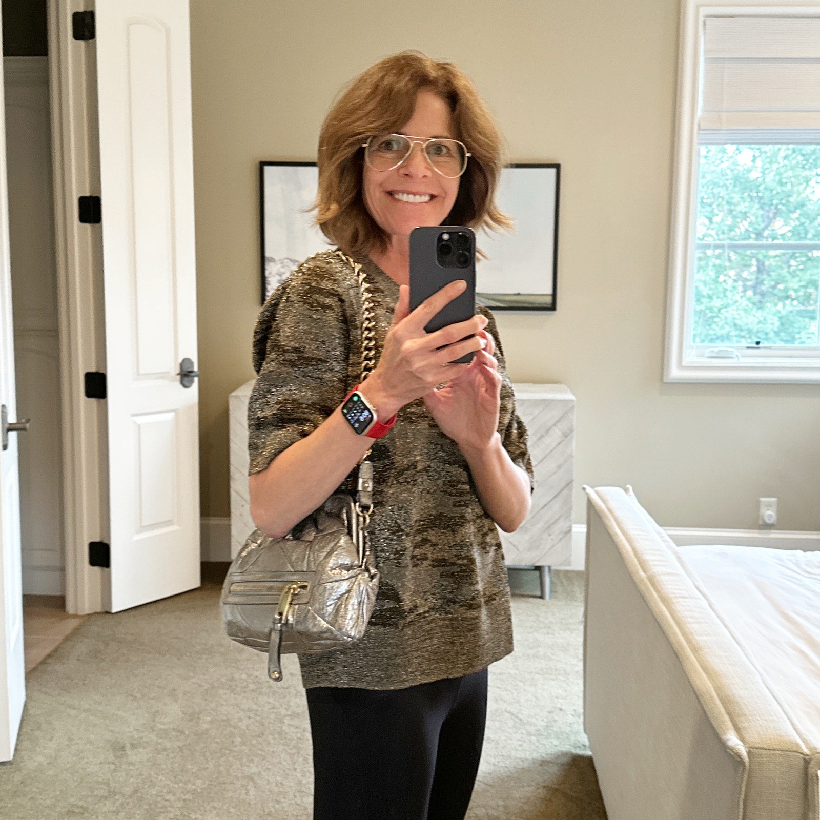 Manufacturer Color(s) Silver (I would describe it as metallic pewter/silver with gold hardware.)