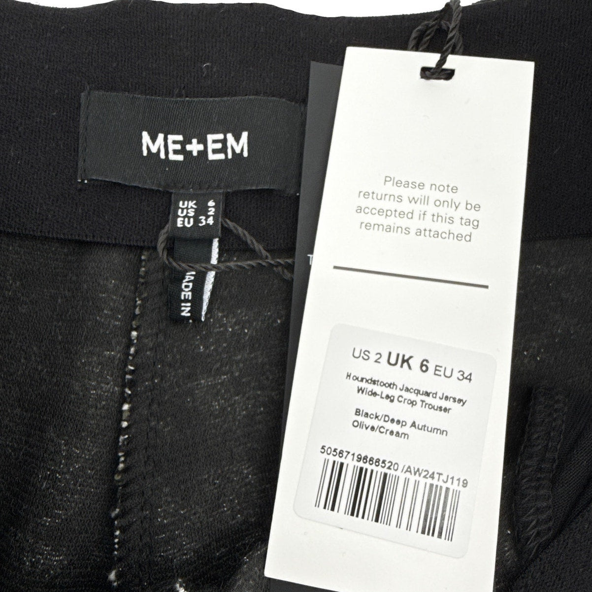 ME+EM Houndstooth Wide Leg Crop Pant Jacquard Ponte Jersey Tailoring 2|XS
