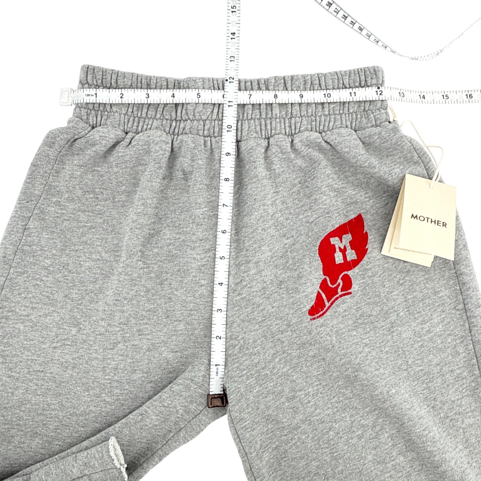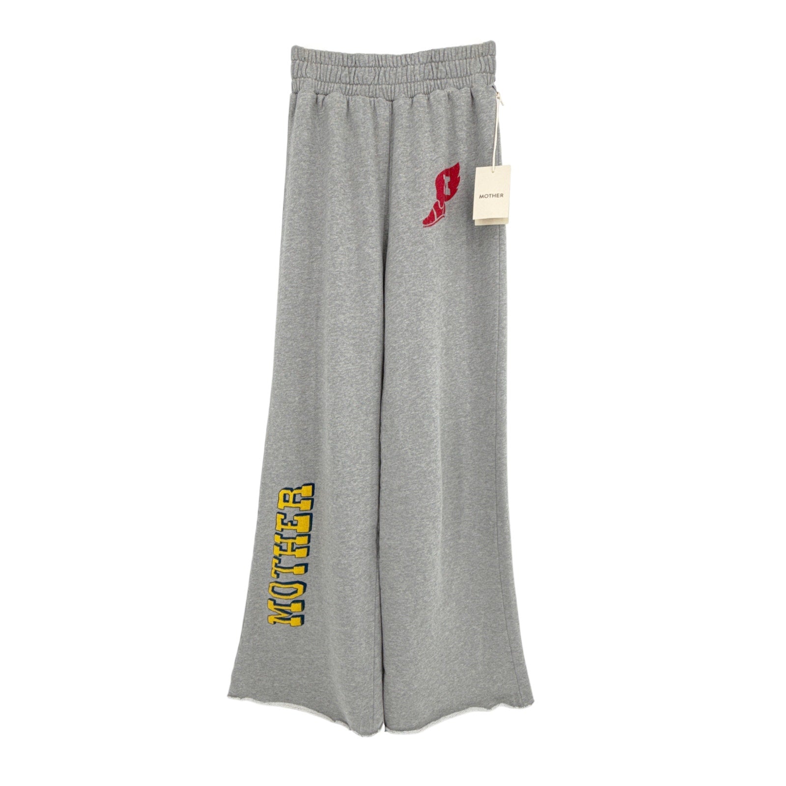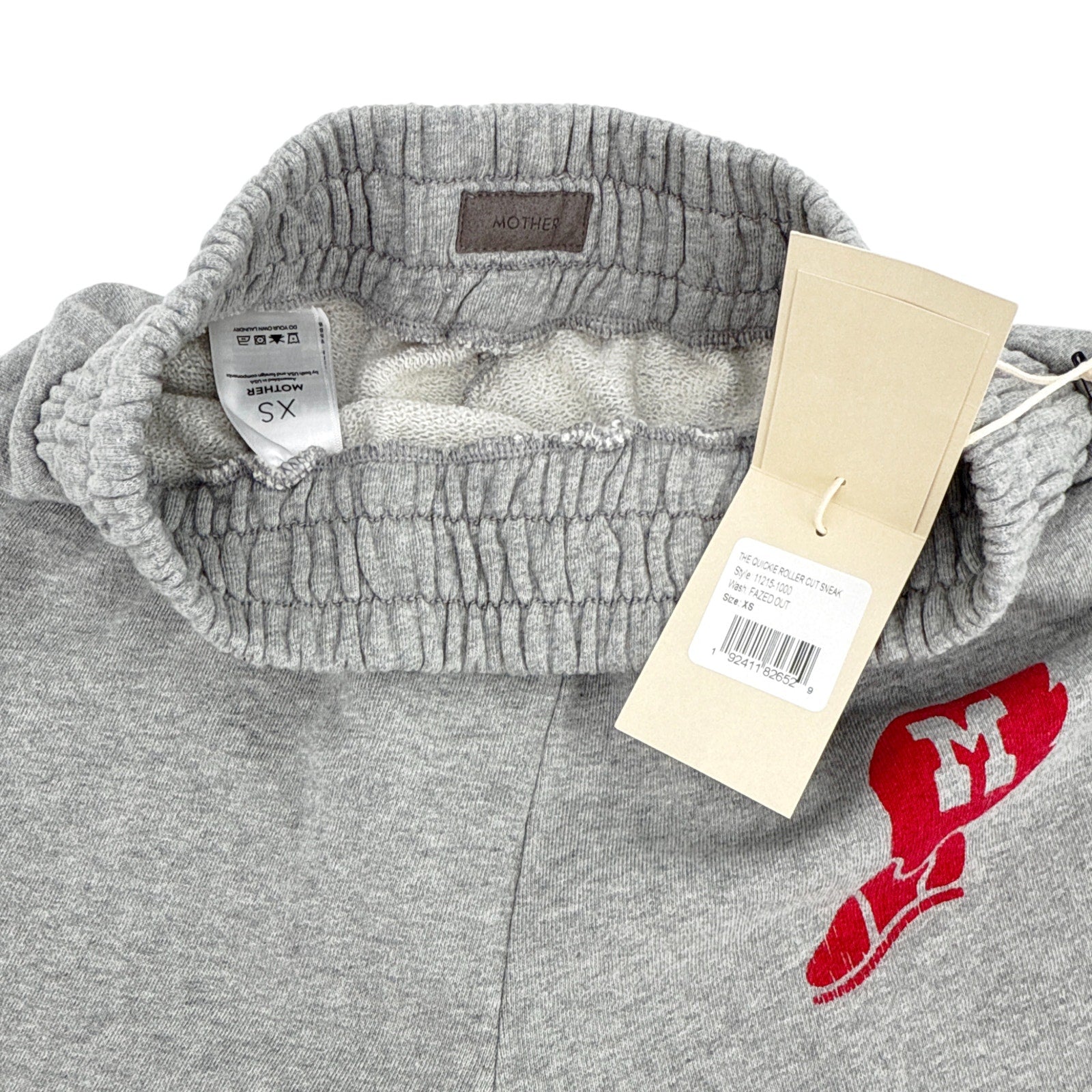 Eyes open, mind elsewhere. Straight-leg sweatpants with a wide elastic waistband, long inseam, cut-off hem and a loose fit. Made from 100% cotton in grey, Fazed Out features a sneaker graphic at the hip and MOTHER's name in athletic-inspired text at the calf.