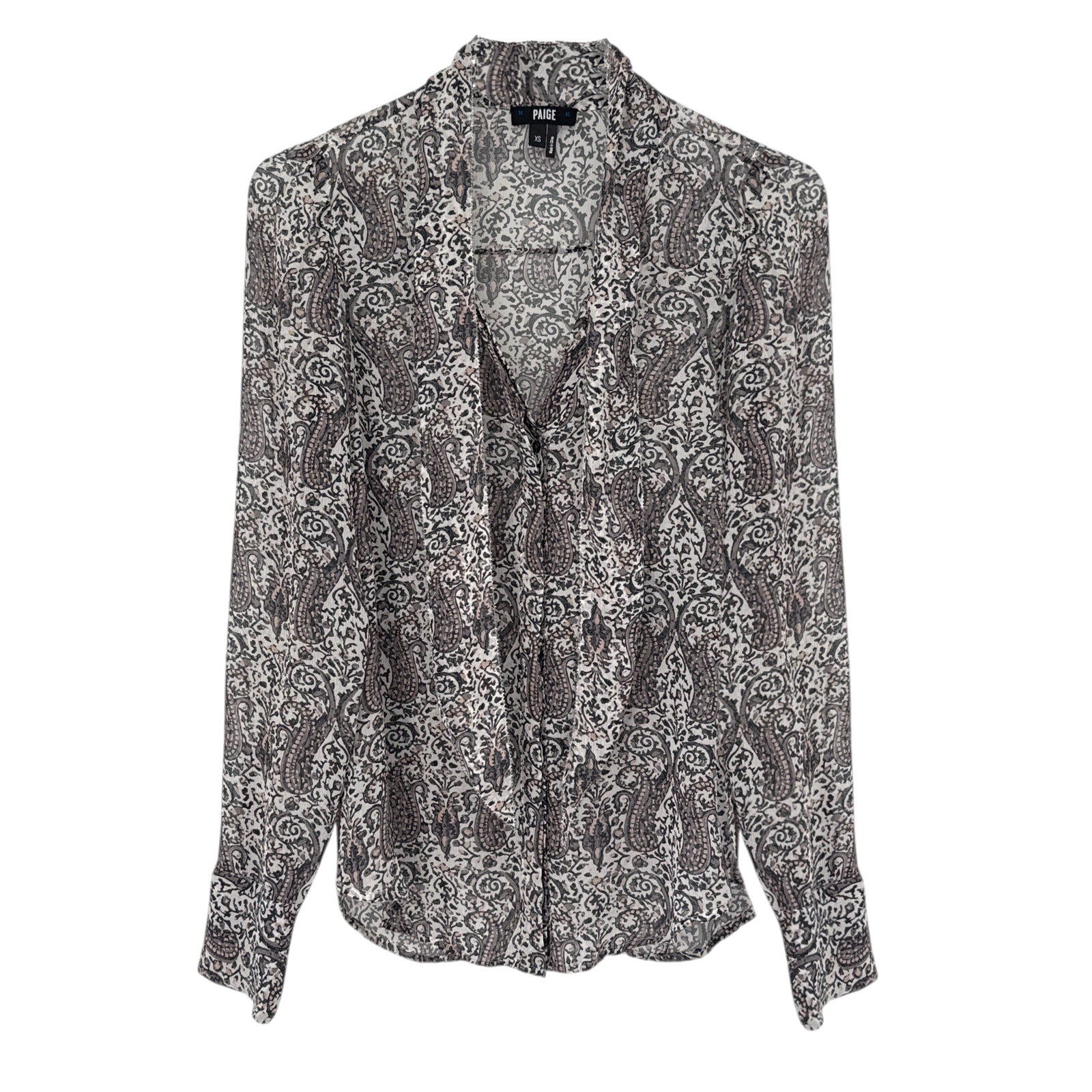 PAIGE Cleobelle Printed Femme Blouse in White/Rabbit/Rose-Santina Pais XS