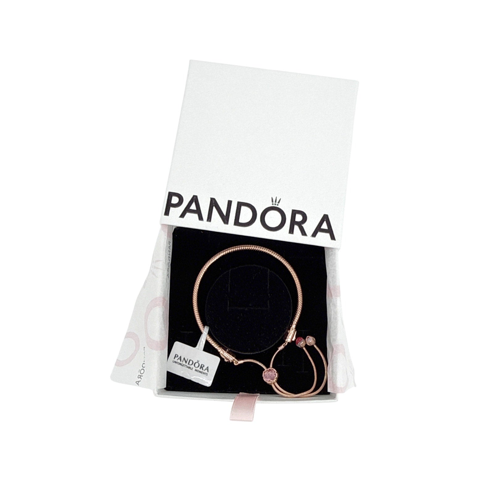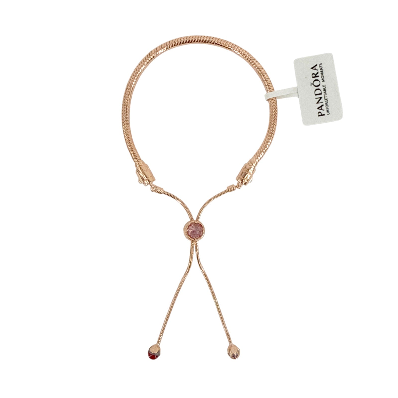 PANDORA Moments Pink Peach Blossom Flower Snake Chain Slider Bracelet