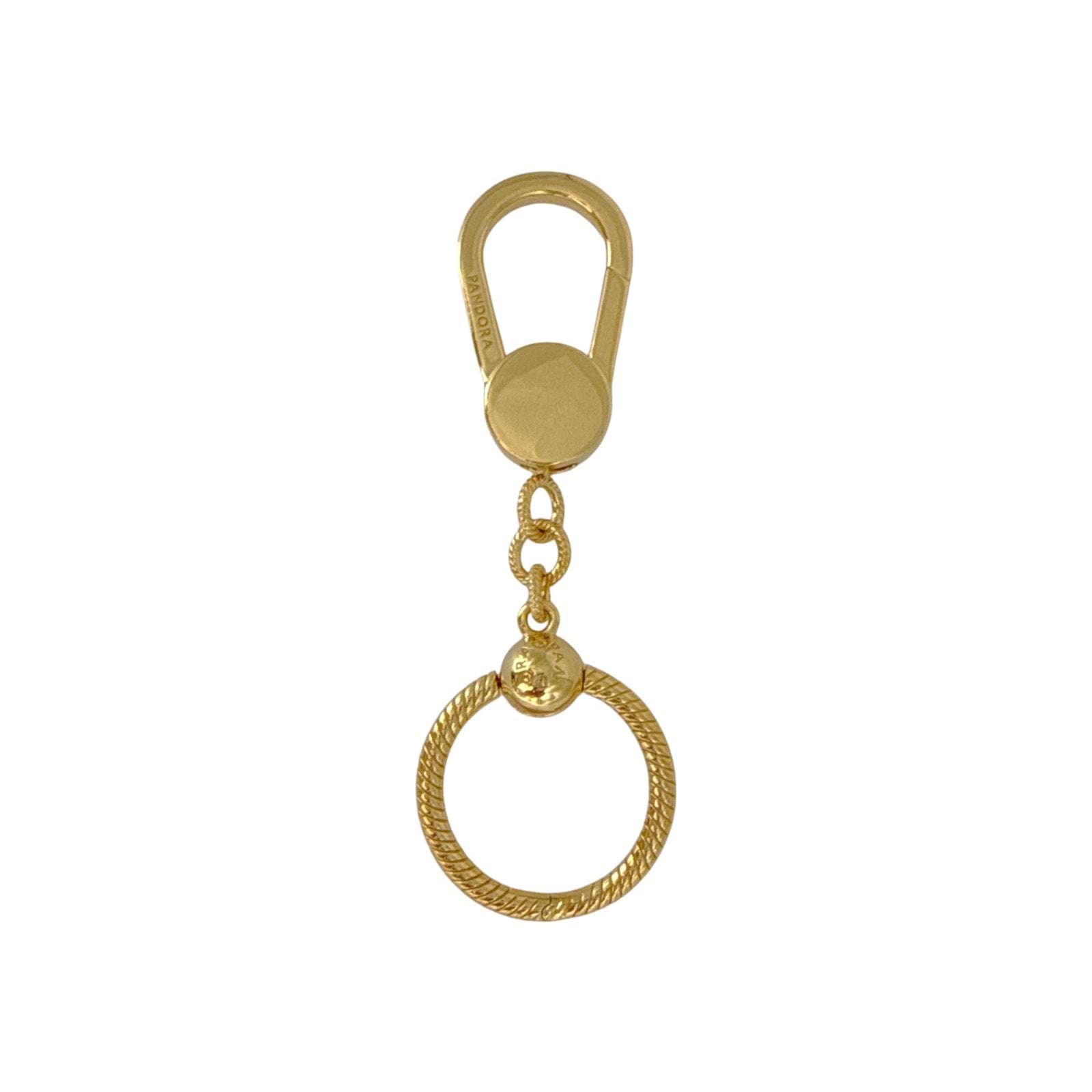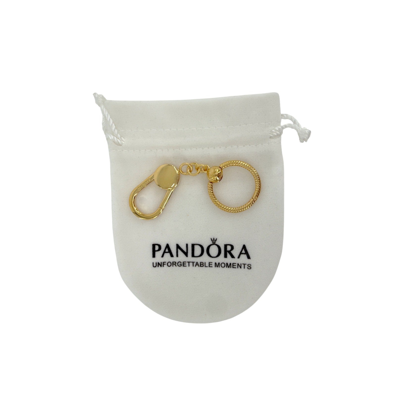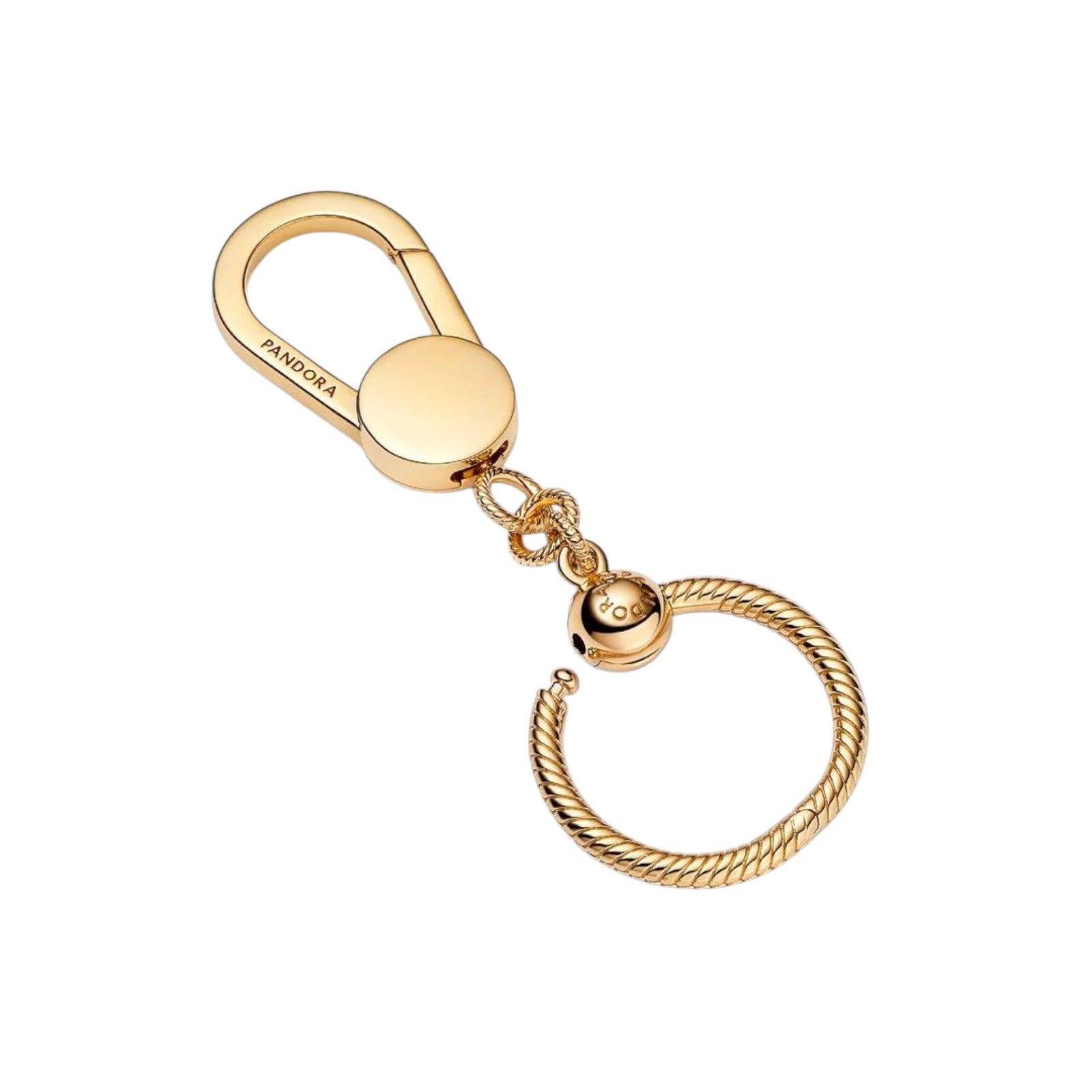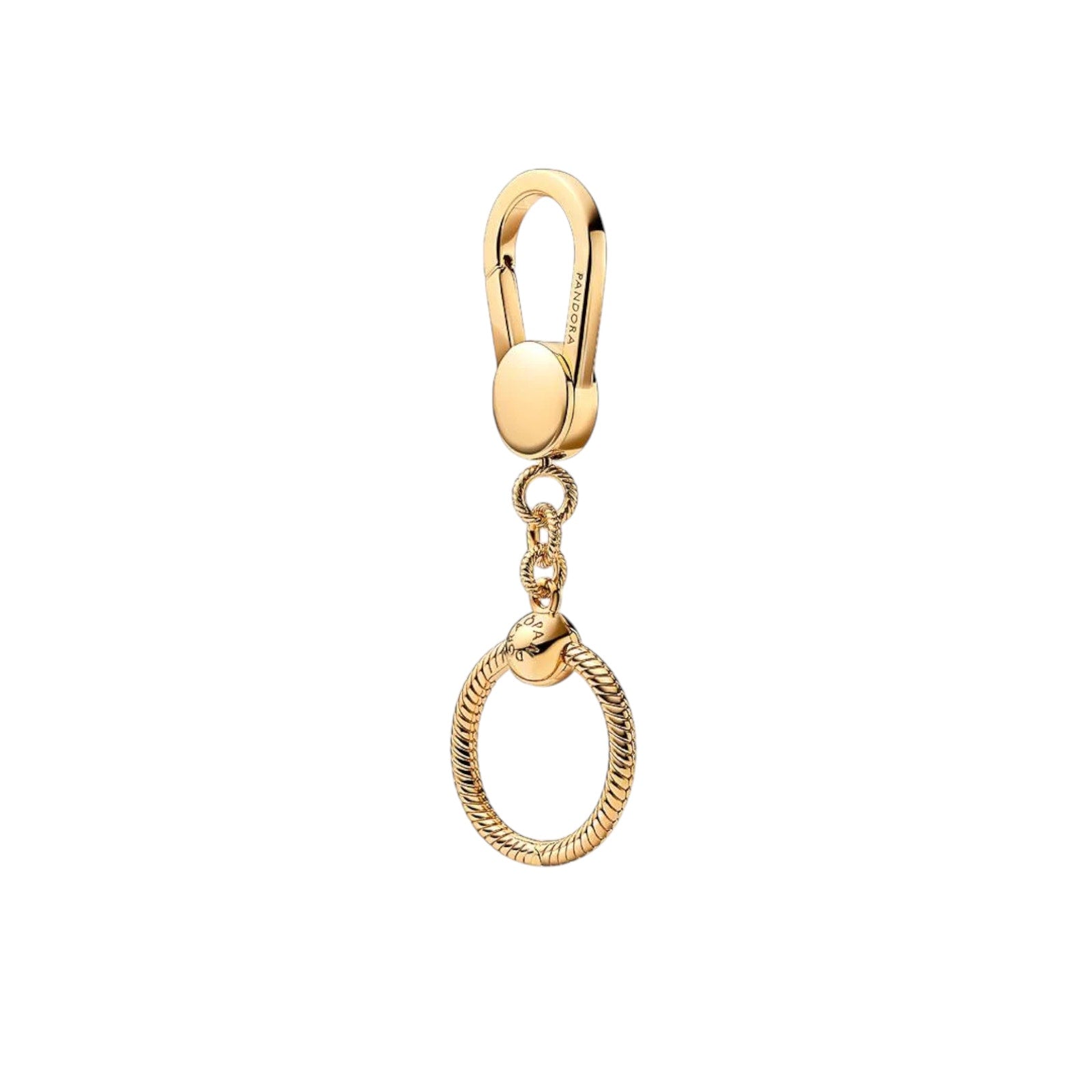 Add sparkle to your tote, cross-body or rucksack with the Pandora Moments Small Bag Charm Holder. Hand-finished with 14k gold plating, this popular charm holder features a small Pandora O Pendant. The flat disc of the lobster clasp can be engraved with your personal mantra. Style up to three of your favorite charms, dangles and pendants and make your bag a part of your story.
