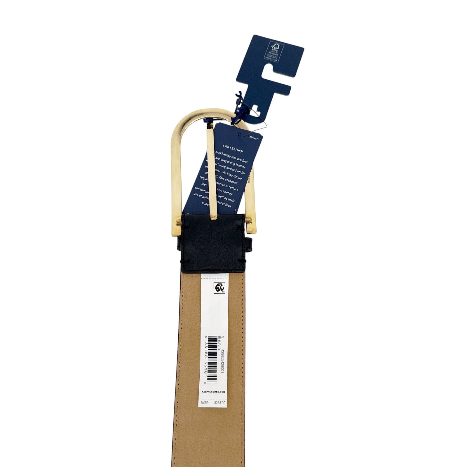 POLO RALPH LAUREN Elongated-Buckle Leather Belt in Black & Gold S