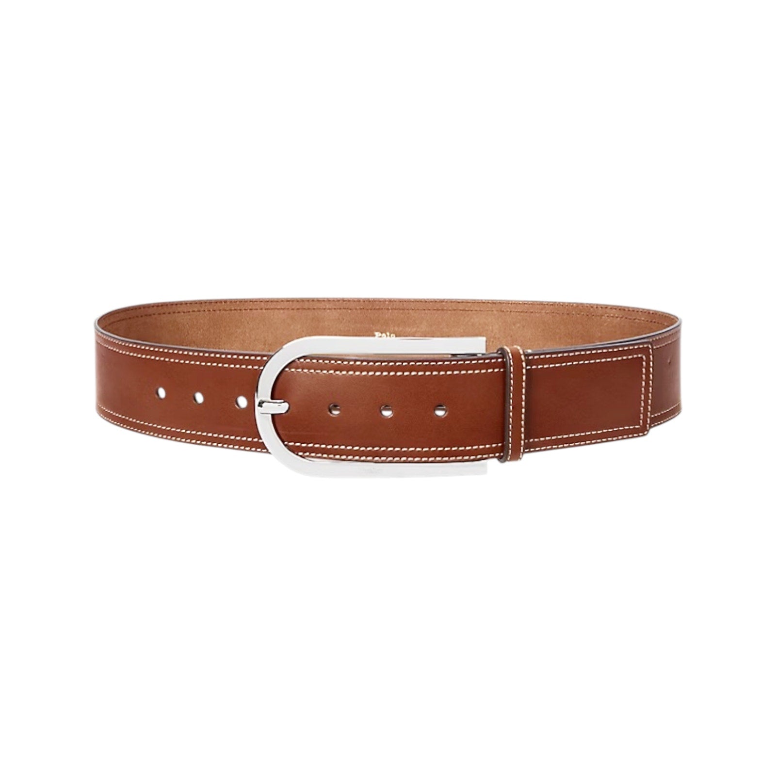 POLO RALPH LAUREN Elongated-Buckle Leather Belt in Cuoio & Silver M