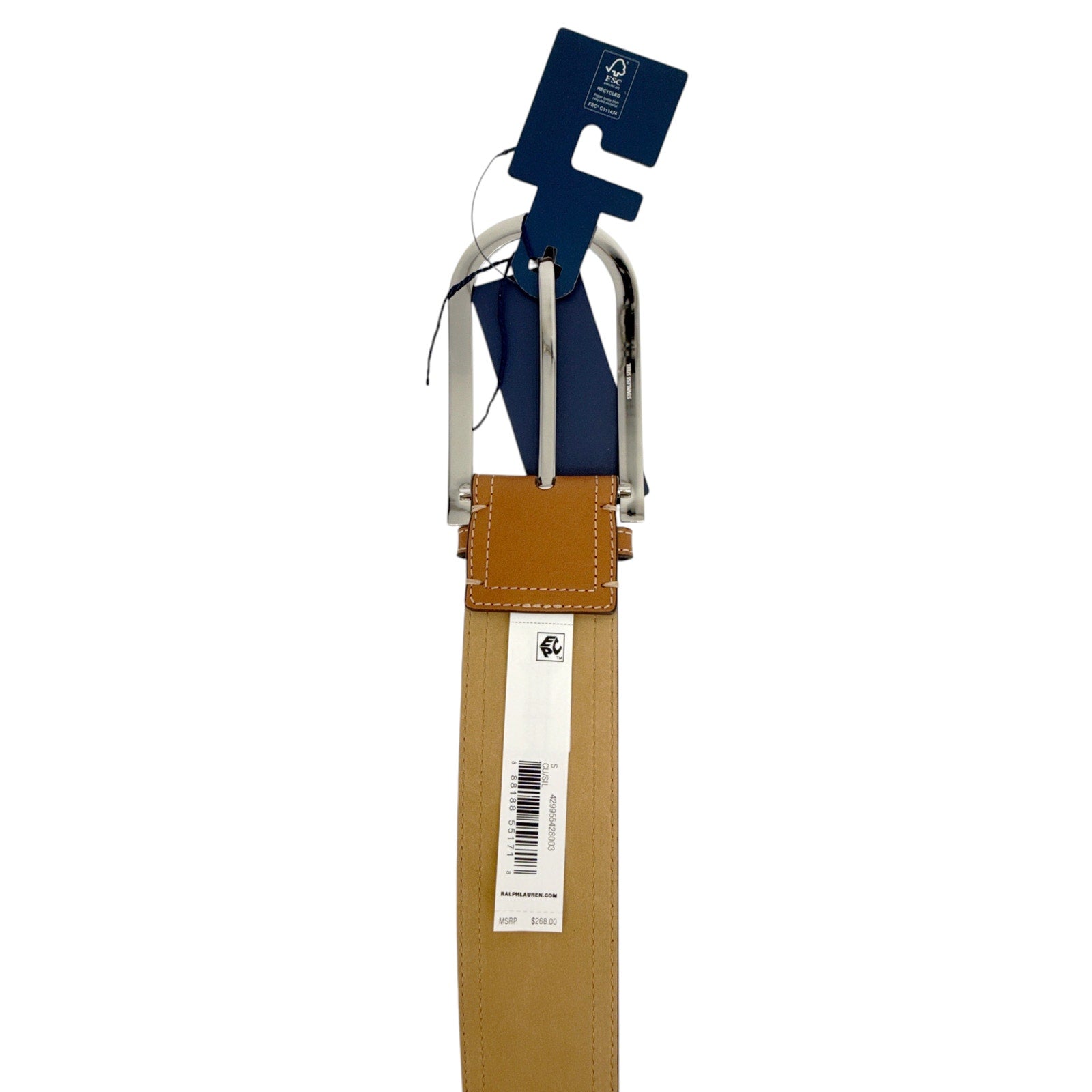POLO RALPH LAUREN Elongated-Buckle Leather Belt in Cuoio & Silver S