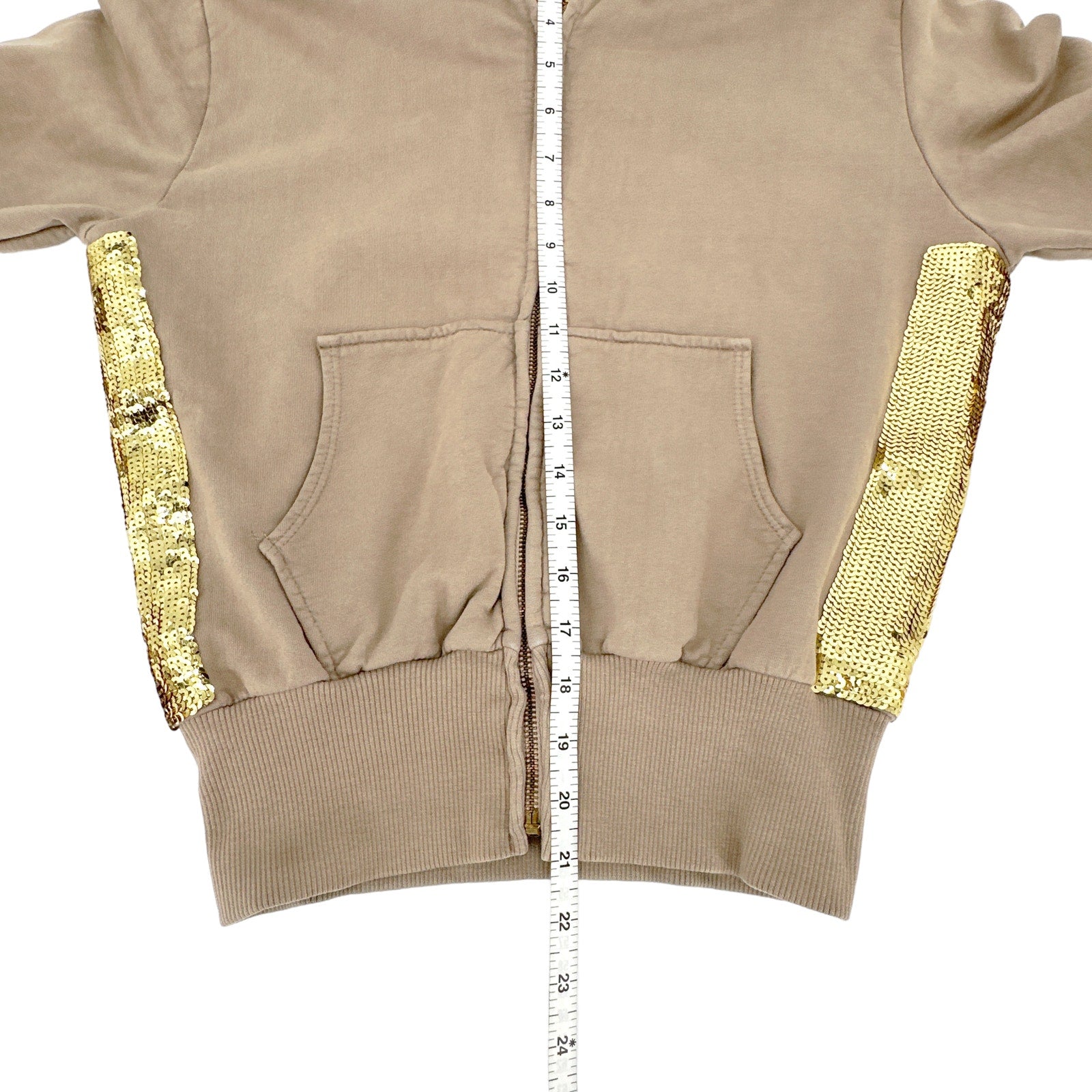 PRIMP Sequin Zip Hoodie in Tan & Gold S