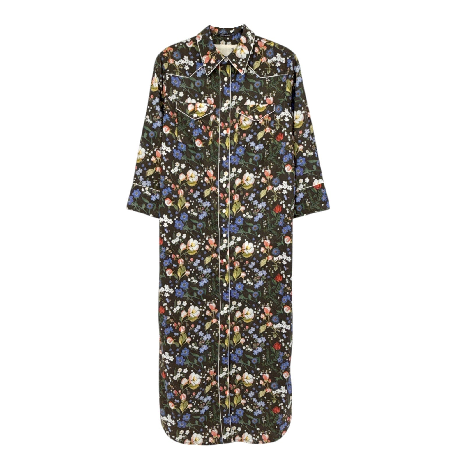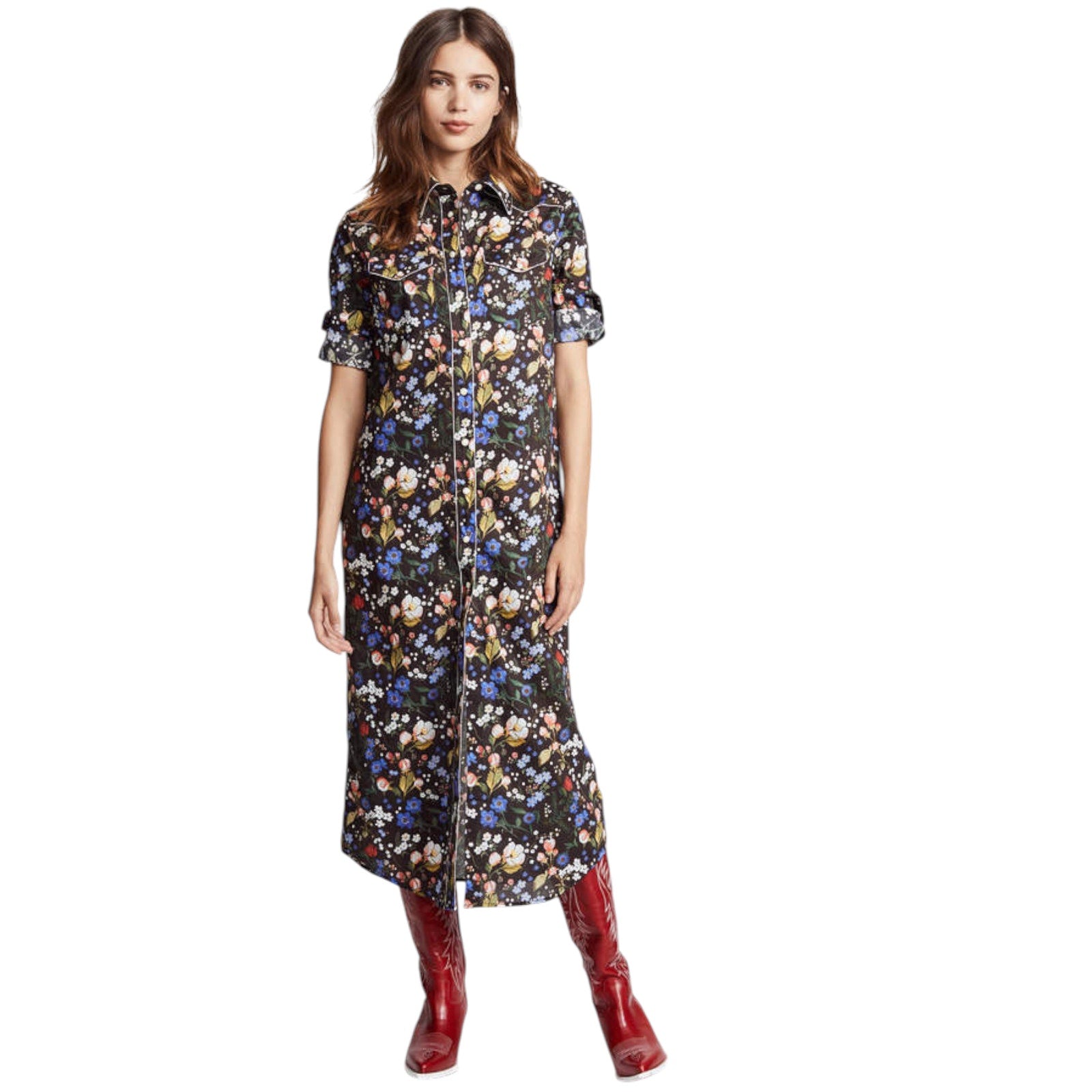 R13 taps Liberty of London for this black/multicolor floral print in premium cotton and merges it with with the favored western vibe for the coolest cowboy shirt dress.