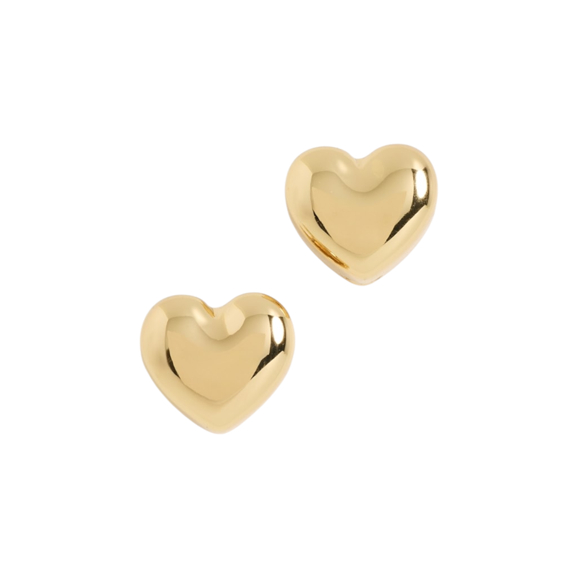 Double sided heart-shaped earrings in gold plated brass with clip-on fastening.