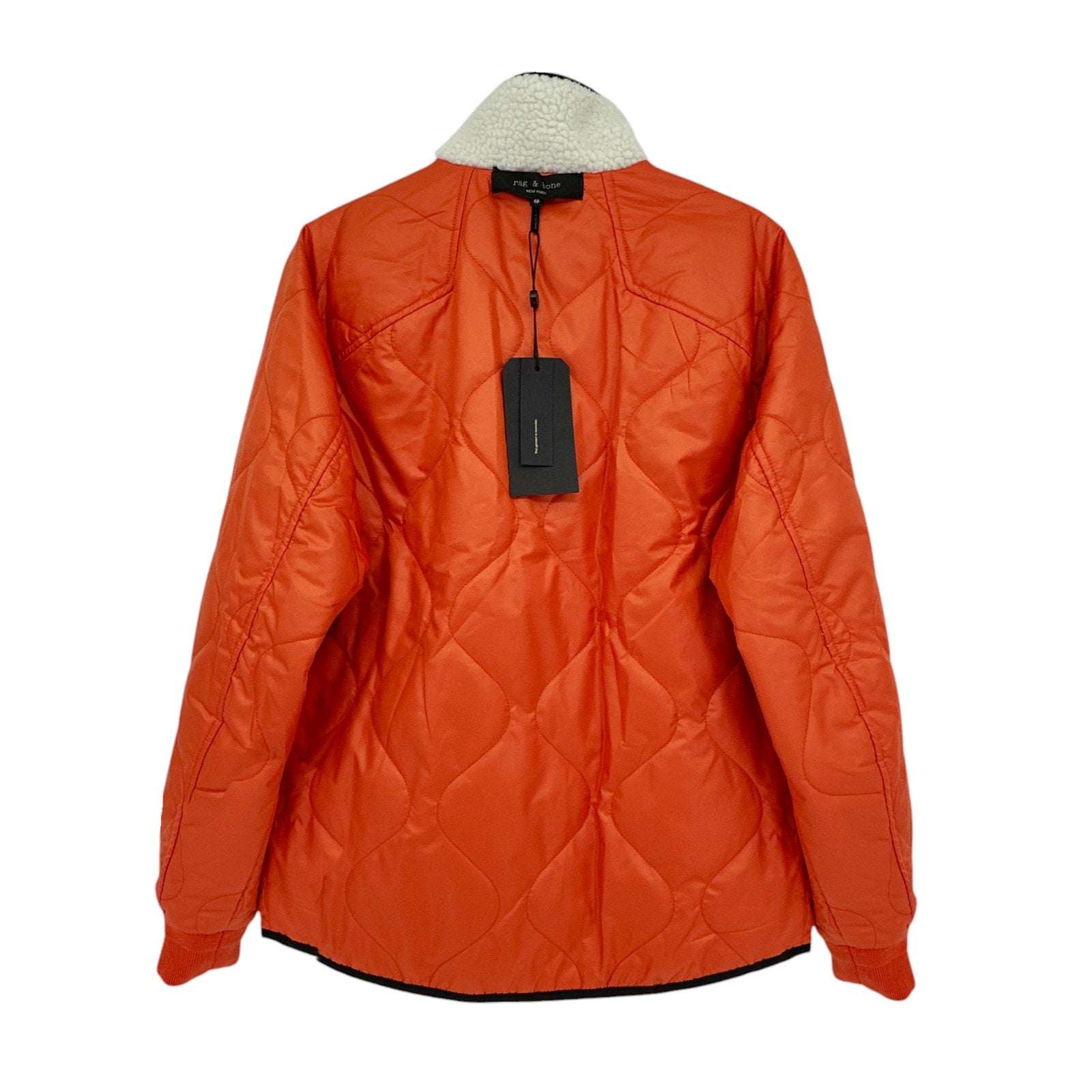 Get acquainted with A|CLIMATE, new collection of versatile outerwear by Rag & Bone. Packable, lightweight, all-season, all-occasion. Two in one. But really. The Austin liner is reversible & highly versatile. On the one side, it's a solid black liner built to be worn under a topcoat. On the other, it's an orange, onion quilted jacket to be worn on its own or as an extra layer.