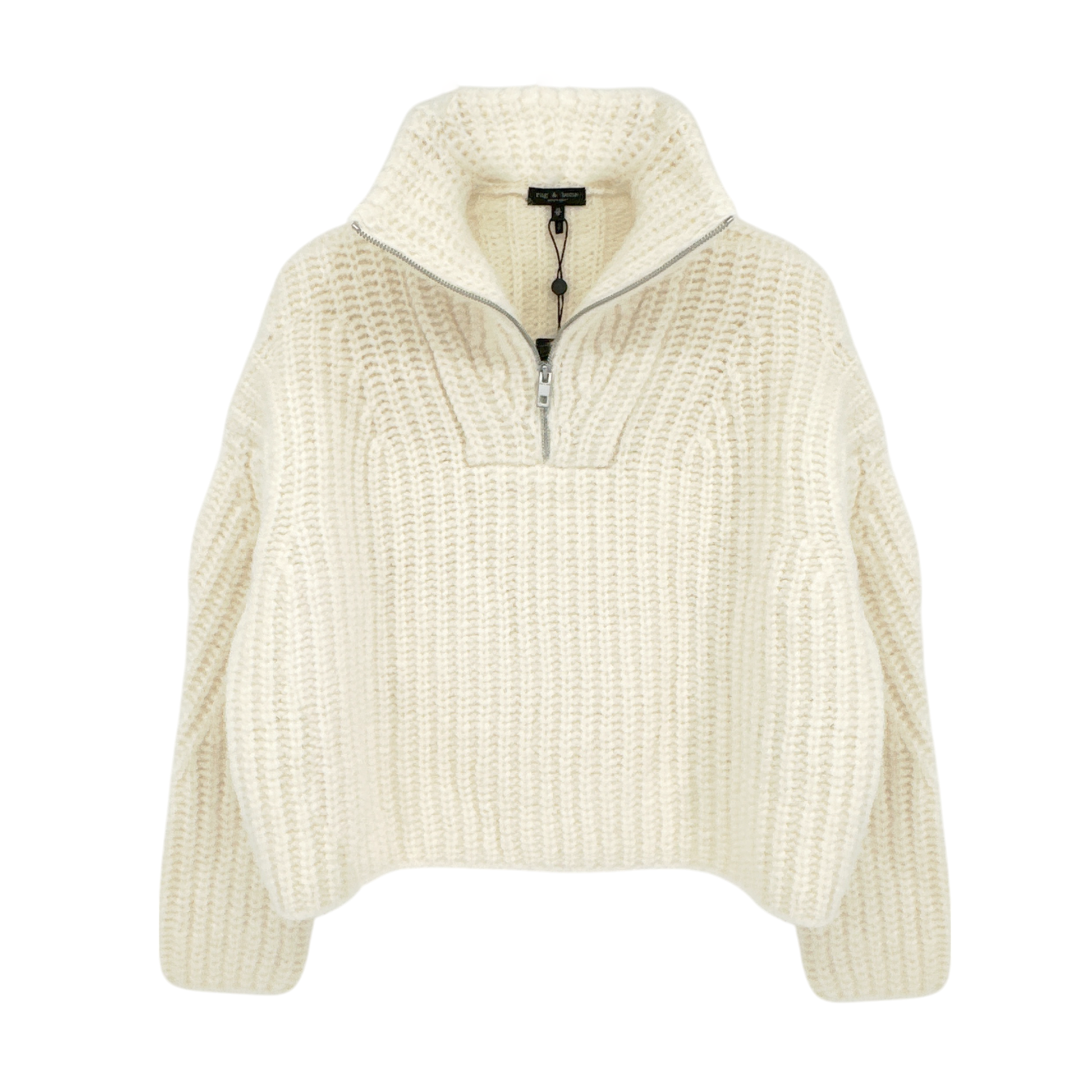 Crafted from a sumptuous wool blend, this ribbed sweater features a half zip so you can layer with ease. Layers perfectly under a peacoat.