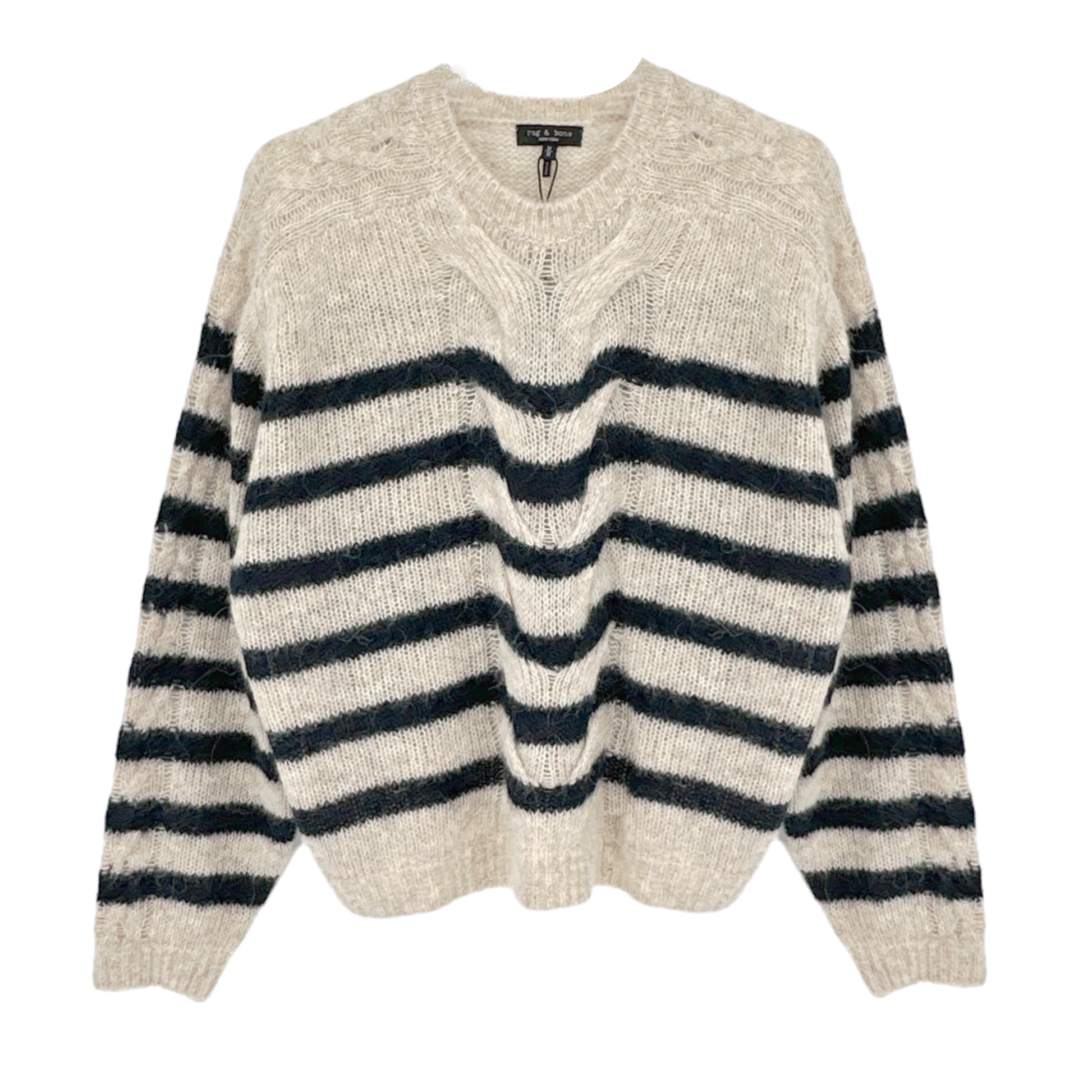 RAG & BONE Mia Striped Wool Alpaca Cable Sweater M