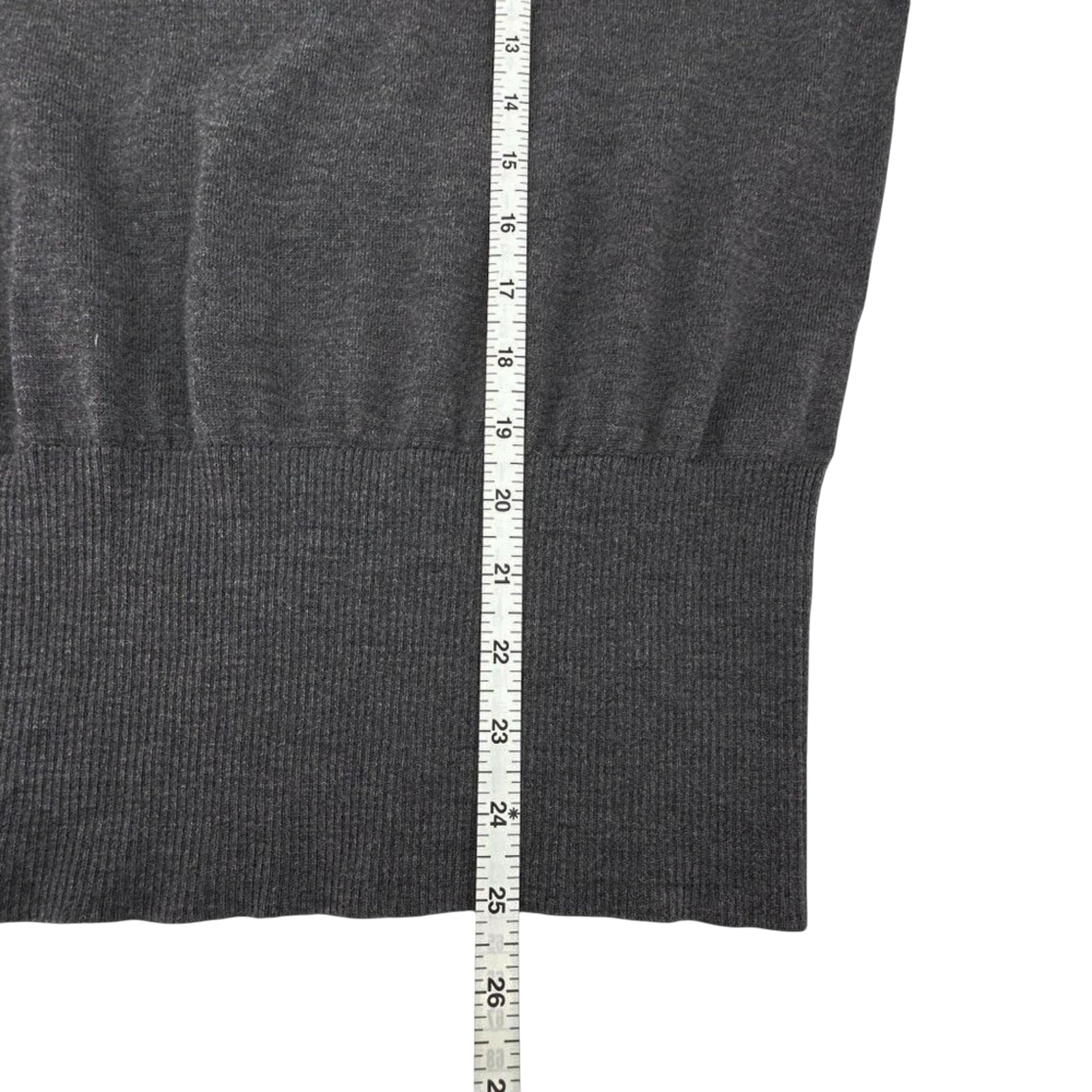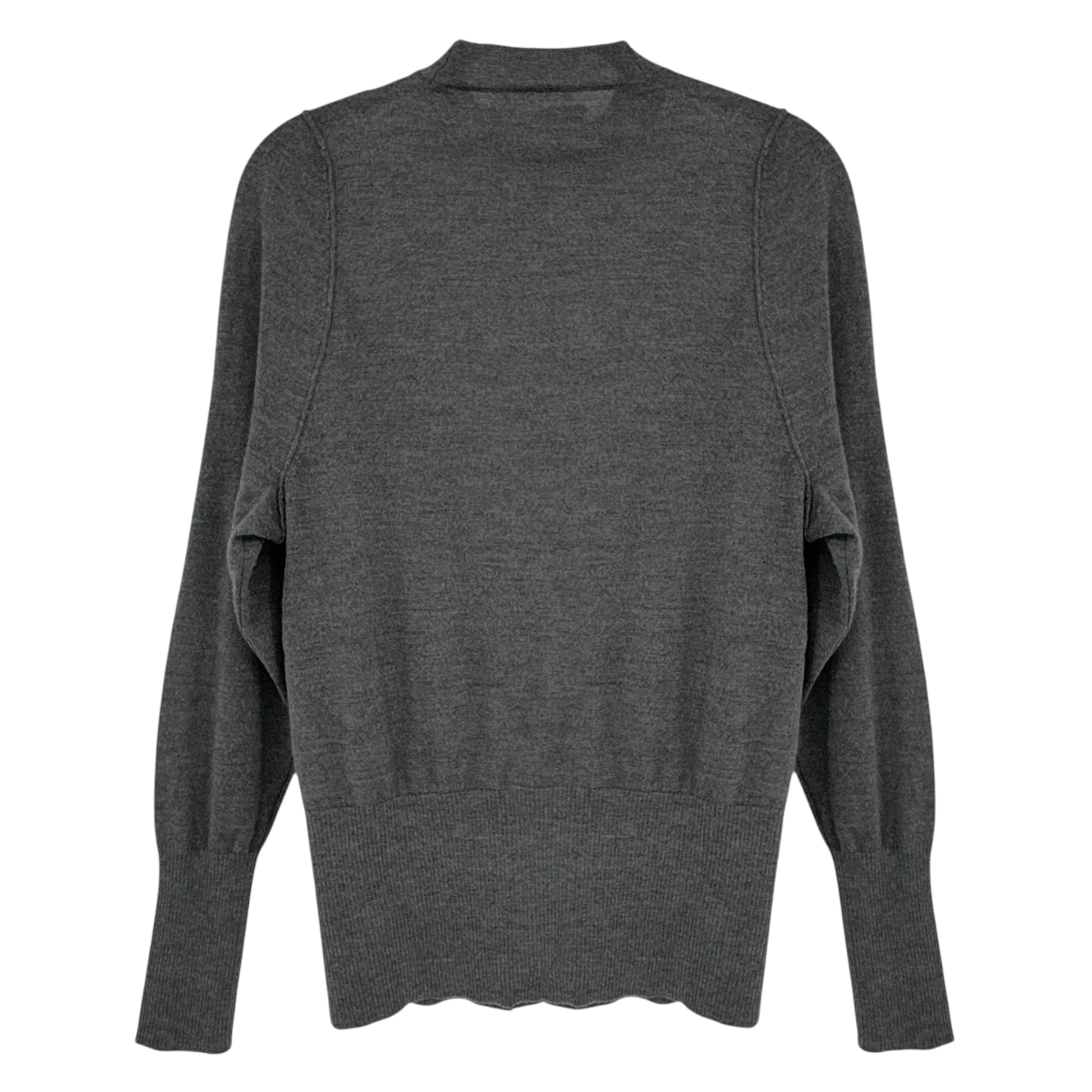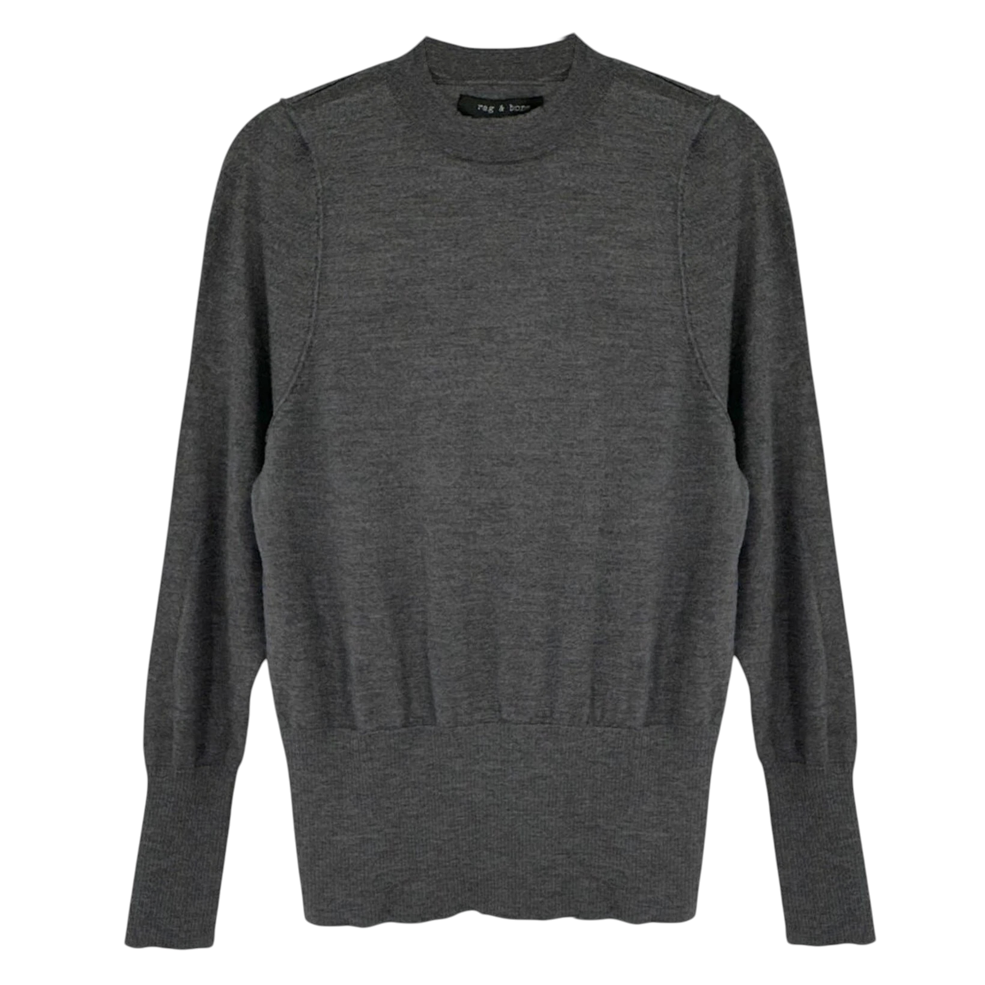 Rag & Bone's Sydney sweater is charcoal extra-fine merino wool. This lightweight piece is styled with a mock turtleneck.