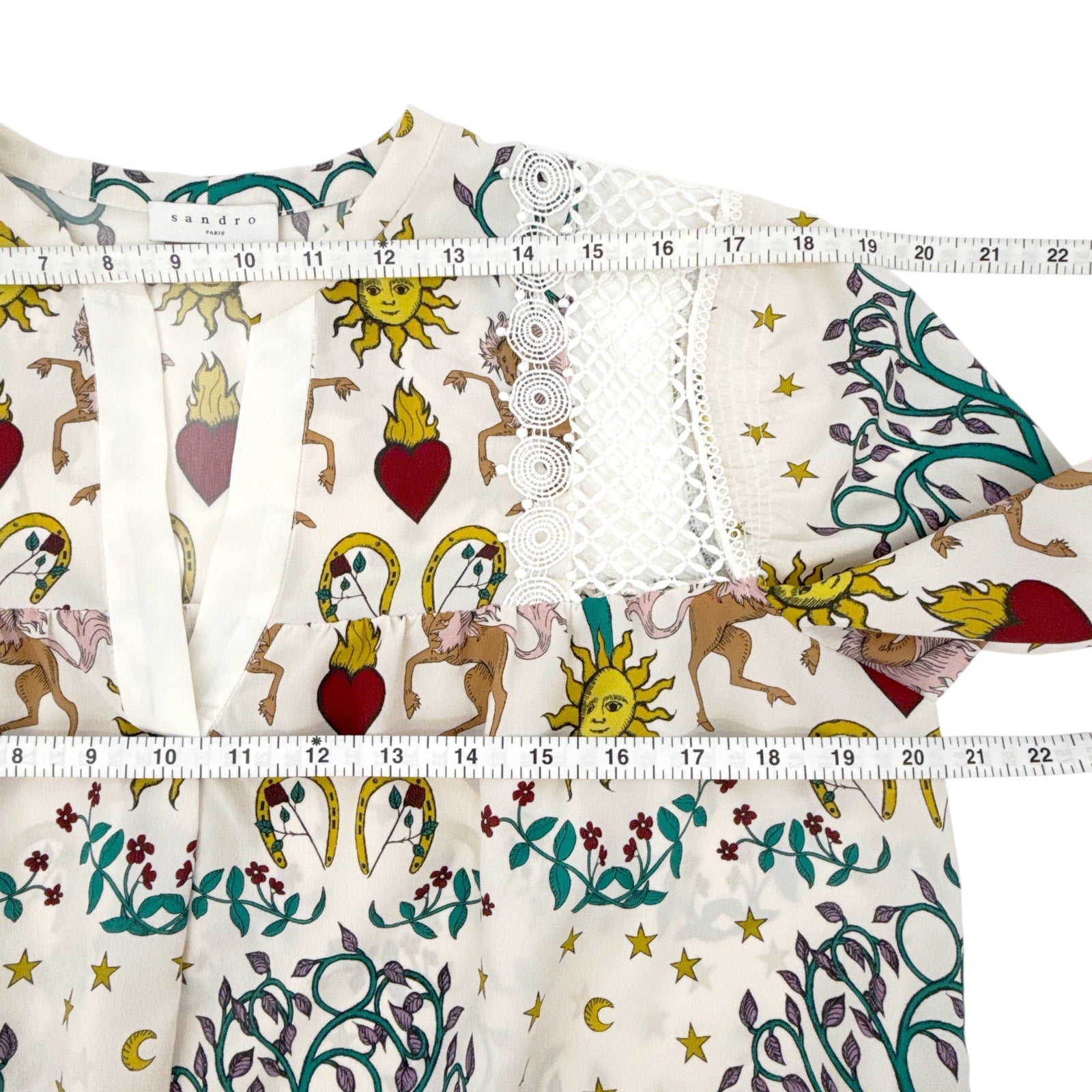 SANDRO Azucar Print Chiffon Blouse In Off White 2|M