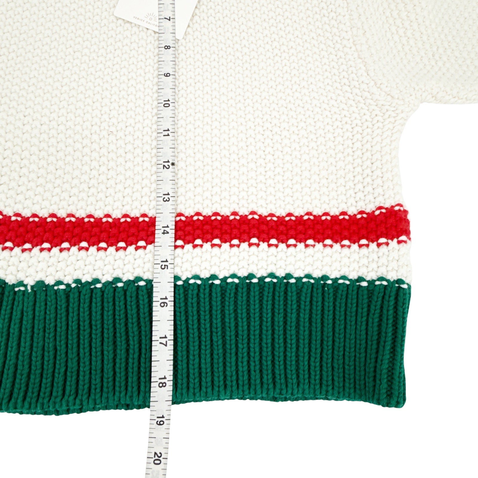 Slightly cropped, but fully precious! This festive stripe, medium weight long sleeve sweater is the cutest new addition to your wardrobe.