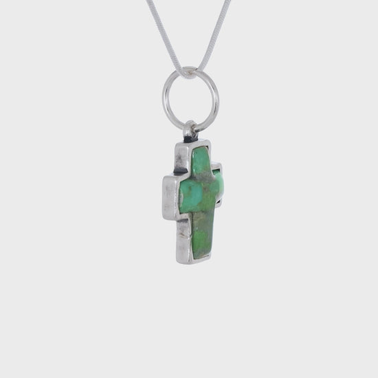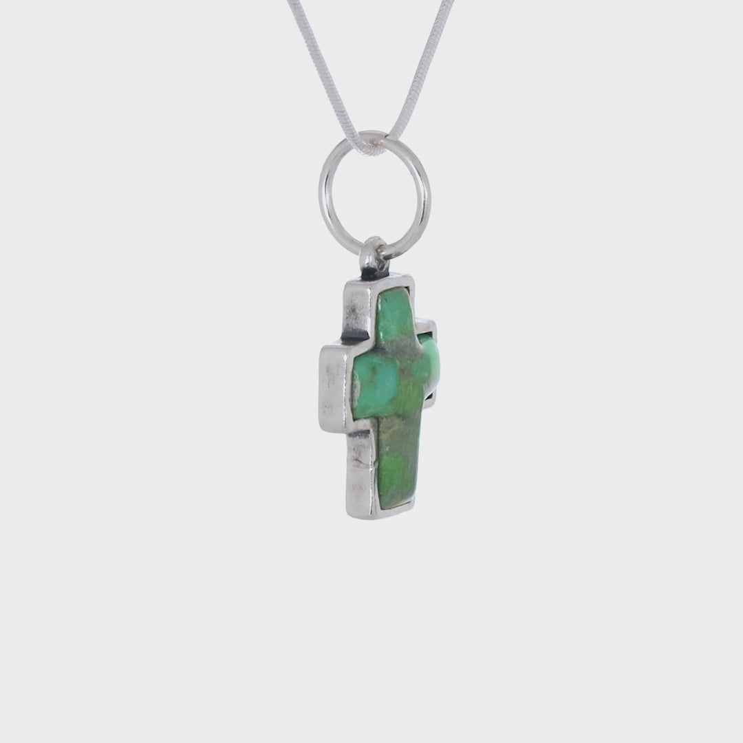 Sterling silver, features a 16mm by 12mm compressed turquoise cross