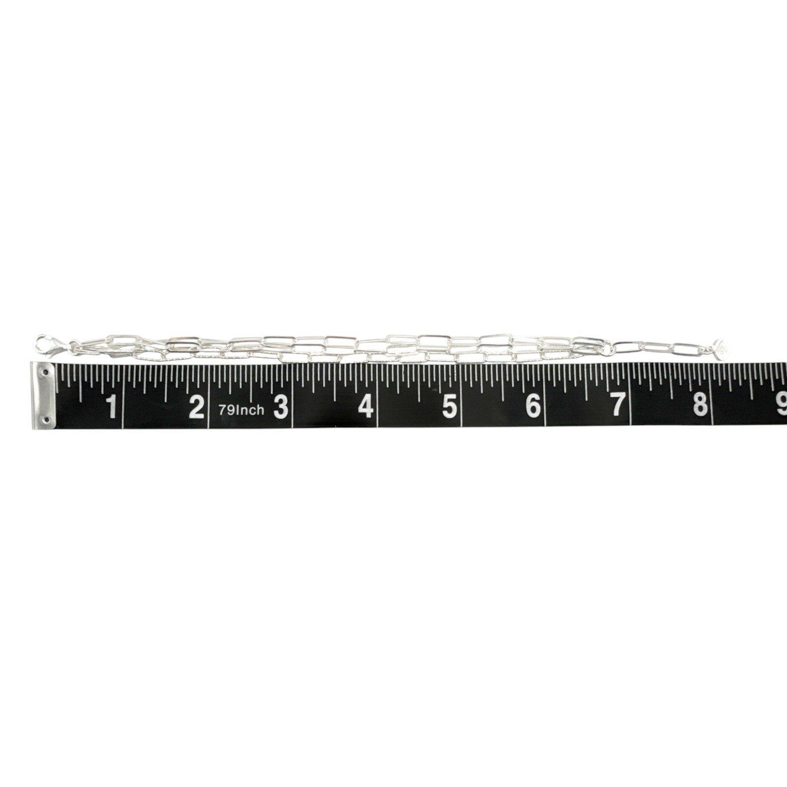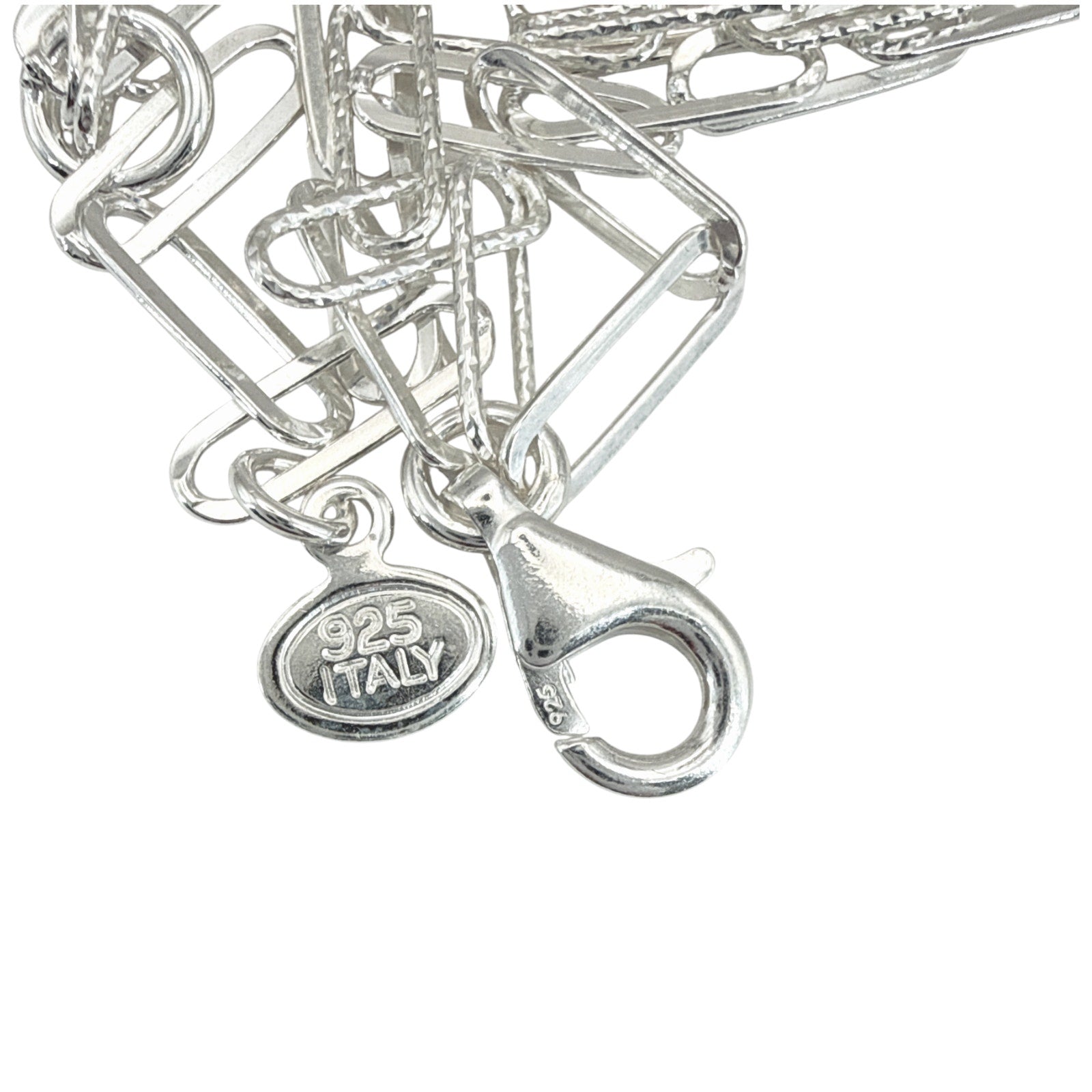 This avant-garde piece was crafted for everyday wear, great for lazy strolls in the park to back in the office for an important meeting. This bracelet has three rows of paper clip-like shapes that are all connected by a lobster claw clasp. The piece comes with a ".925" sterling silver quality stamp as a symbol of guaranteed product quality. Made in Italy, this design offers exceptional craftsmanship and enduring quality.