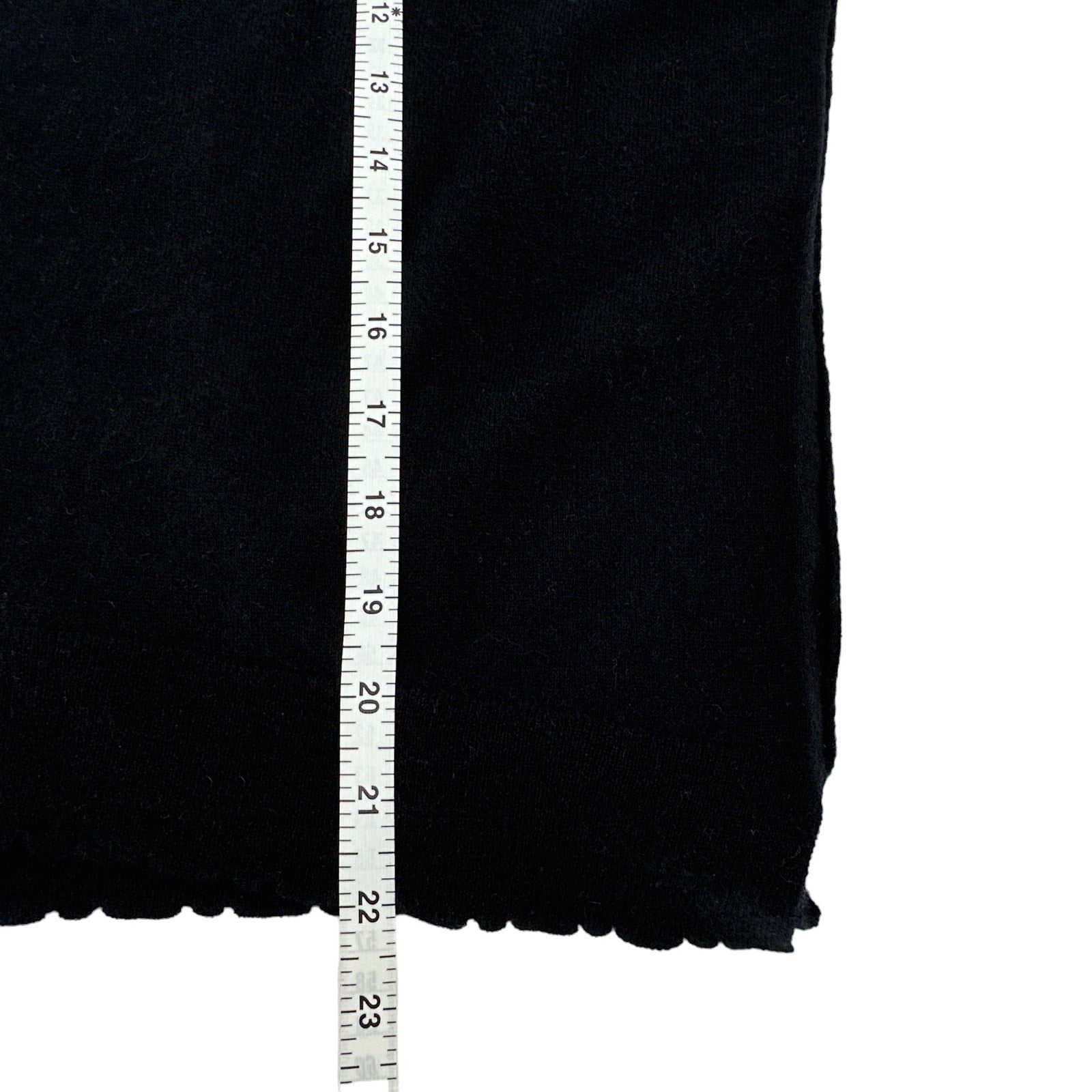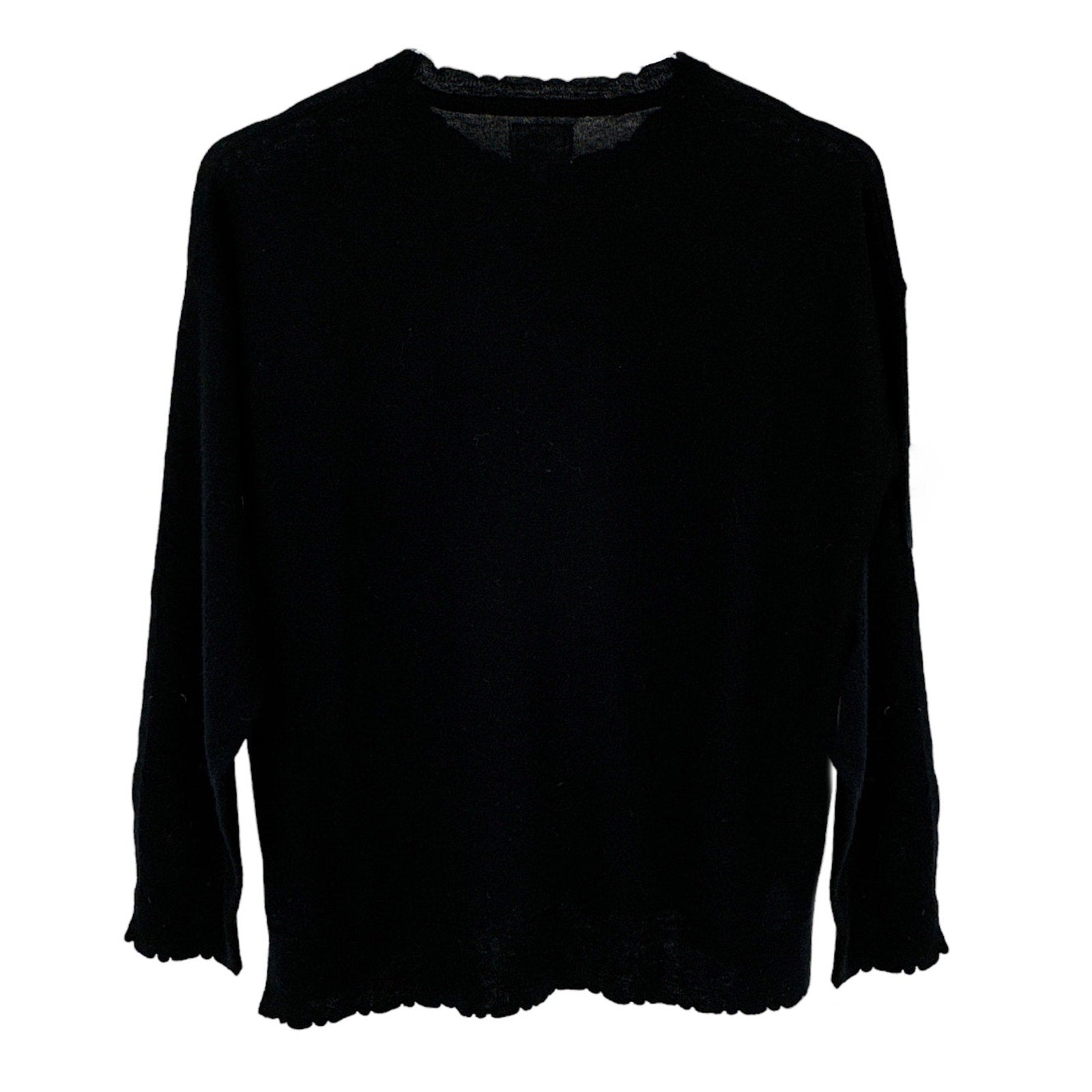 Rib knit trim with scalloped edges.