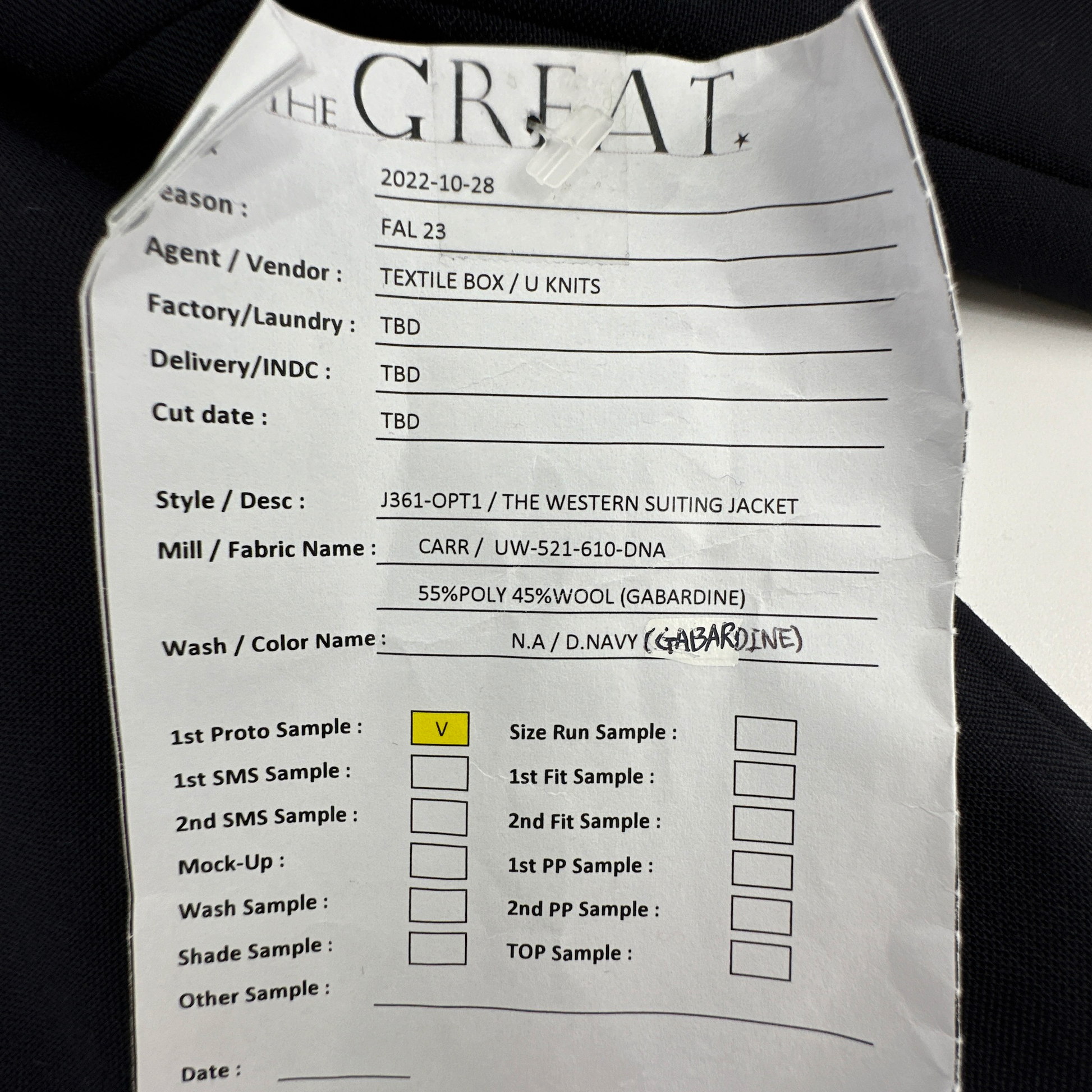 The GREAT. The Western Suiting Jacket. in Navy 1 | S