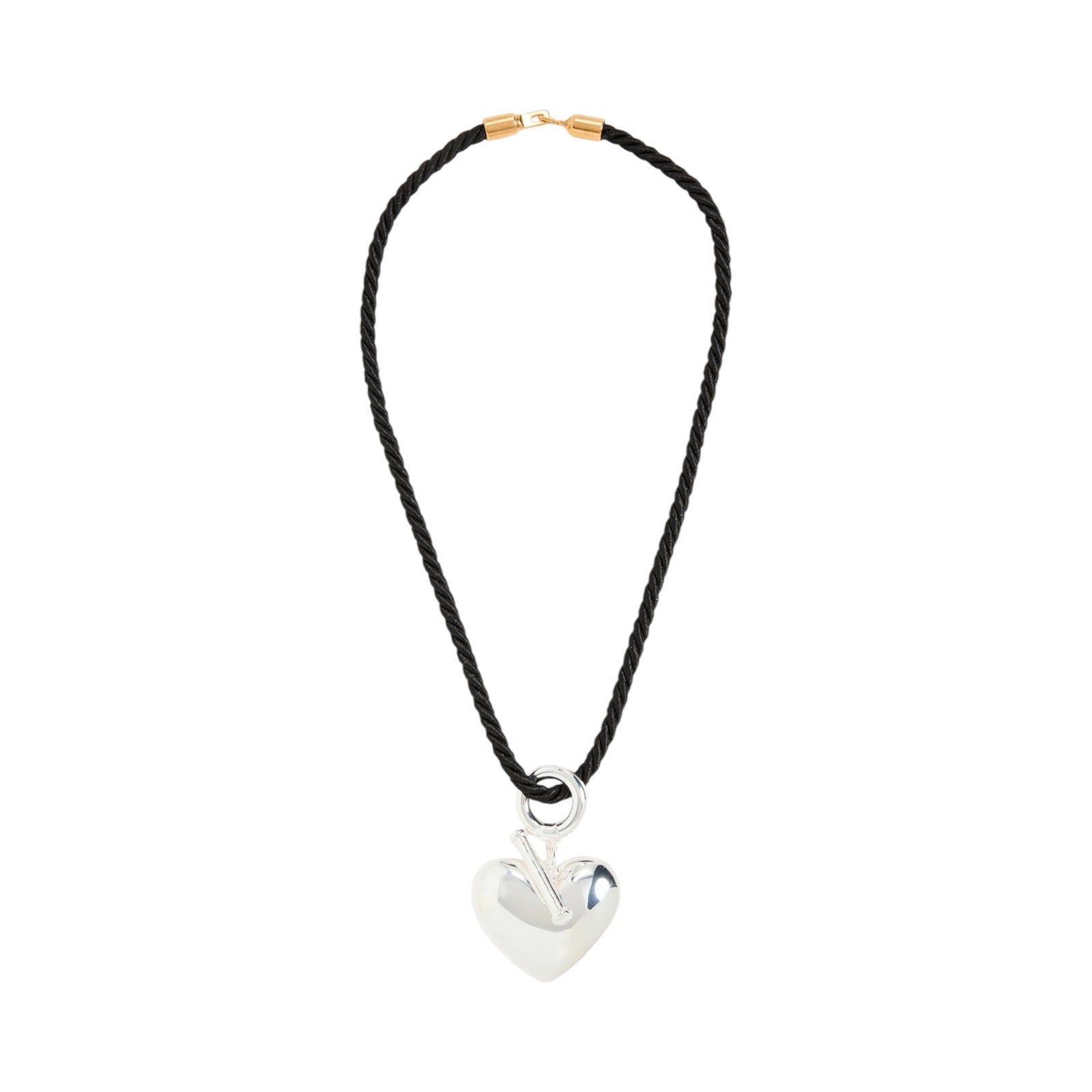 TIMELESS PEARLY Black Cord Necklace with Silver Heart