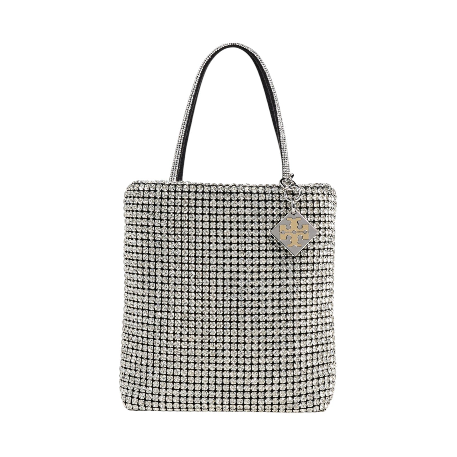 TORY BURCH Night Owl Crystal Embellished Mini Tote in Silver