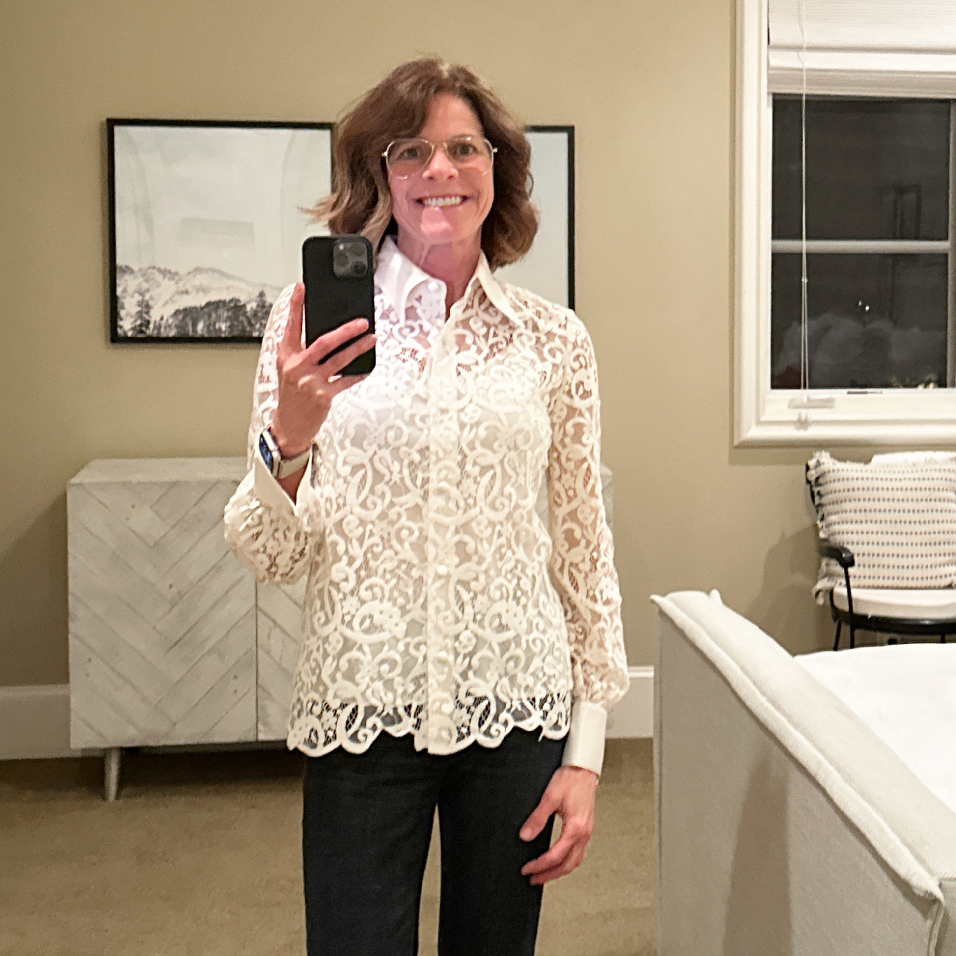 Removable silk camisole that is secured by snap straps inside the lace top