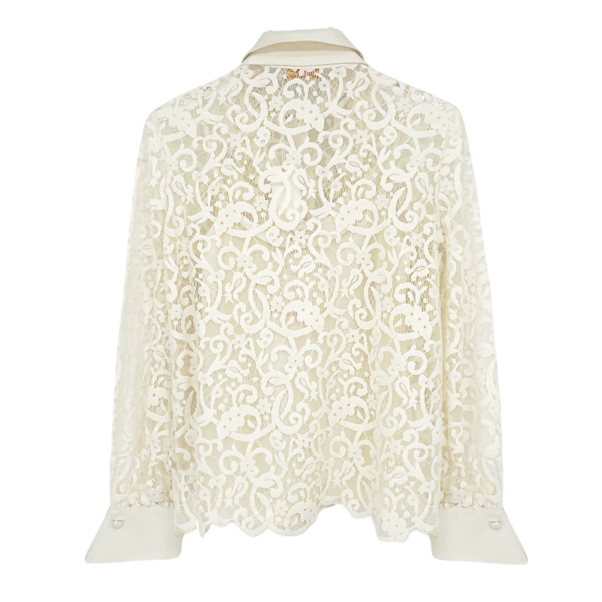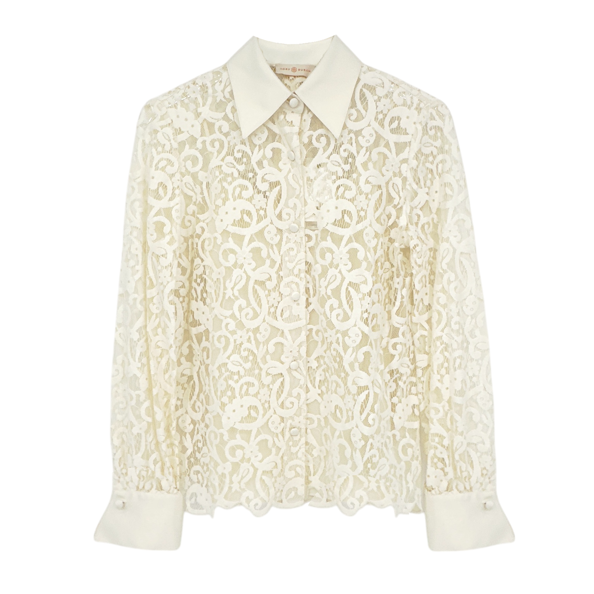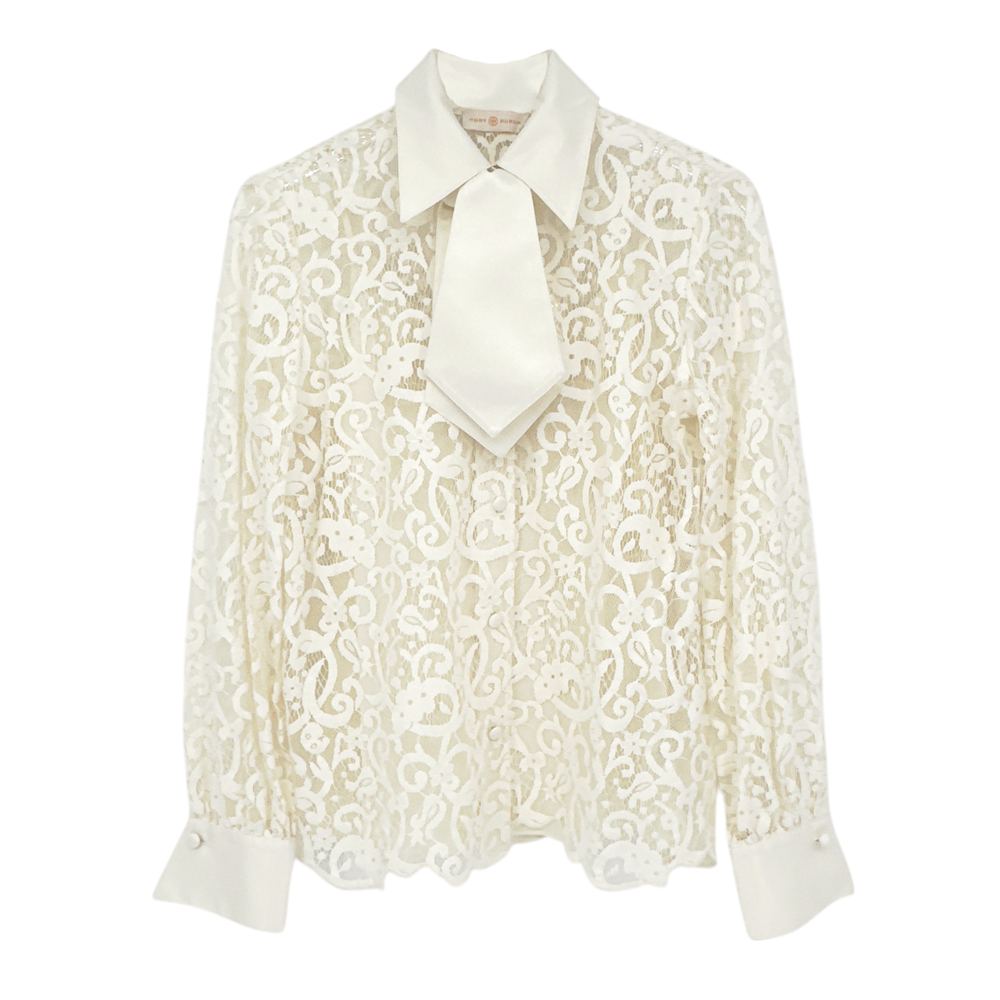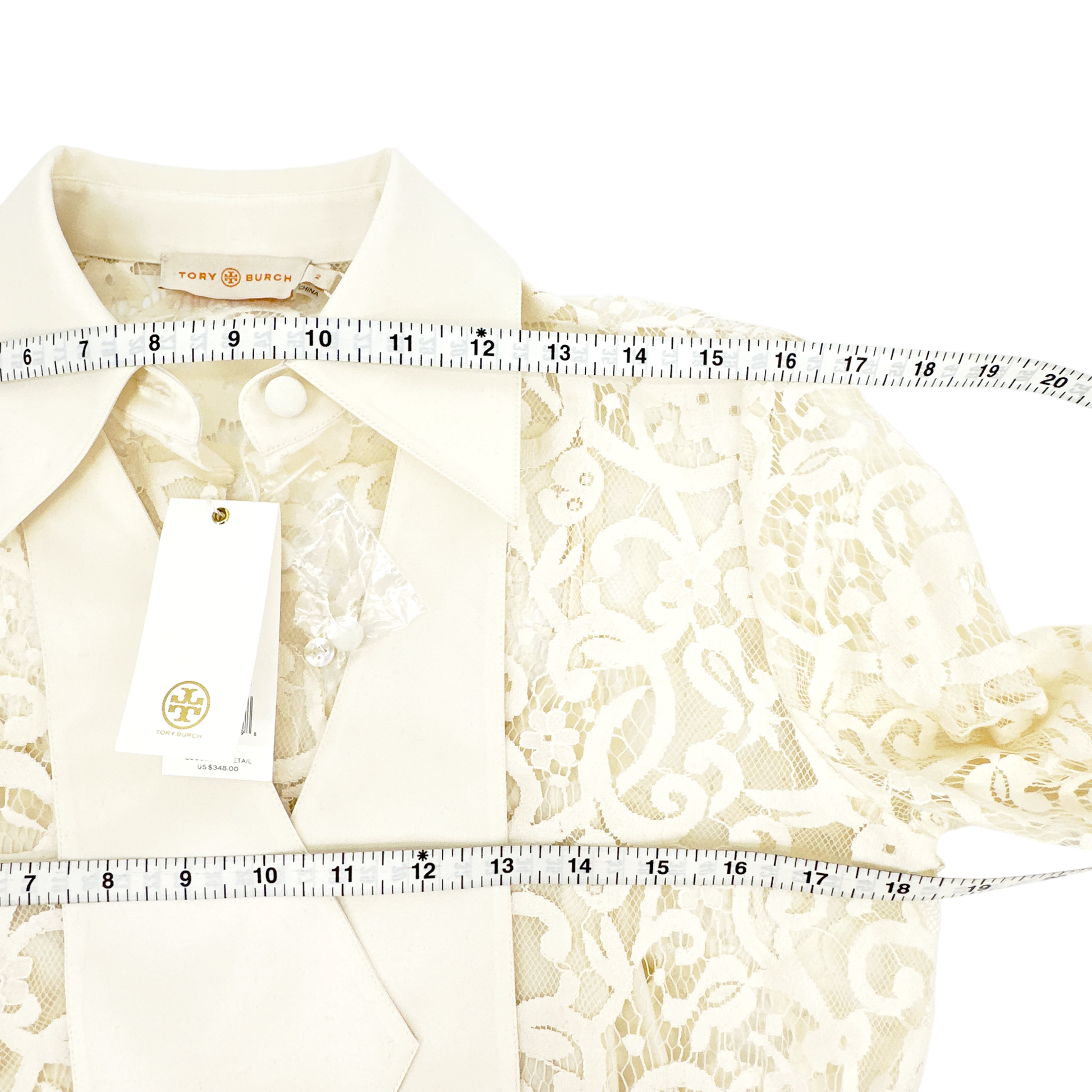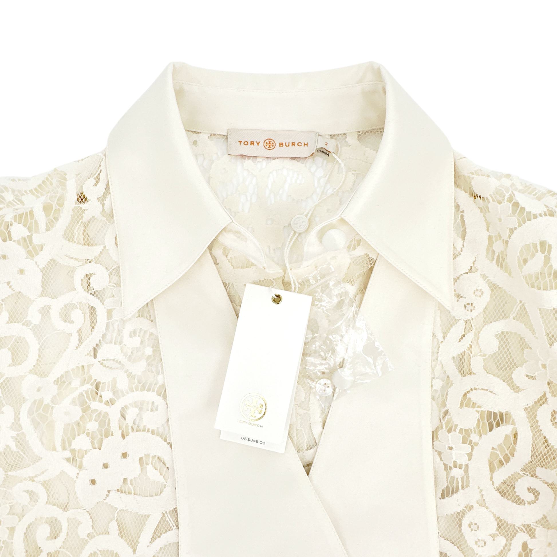 Tory Burch "Rosie" fine lace top with removable ascot-inspired necktie & camisole.