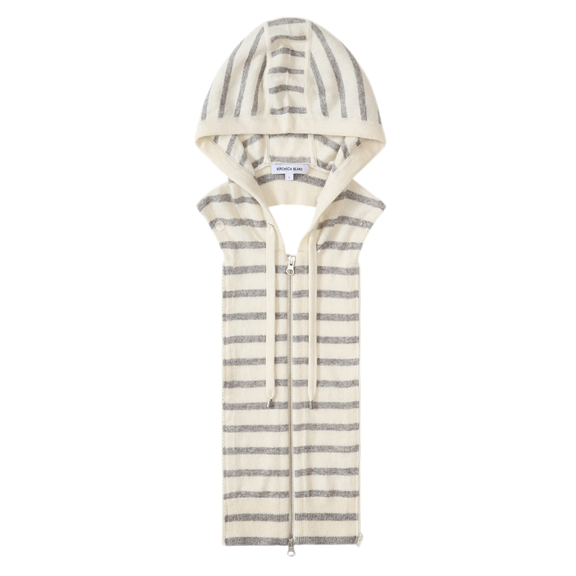 VERONICA BEARD Cashmere Hoodie Dickey in Ivory & Heather Grey