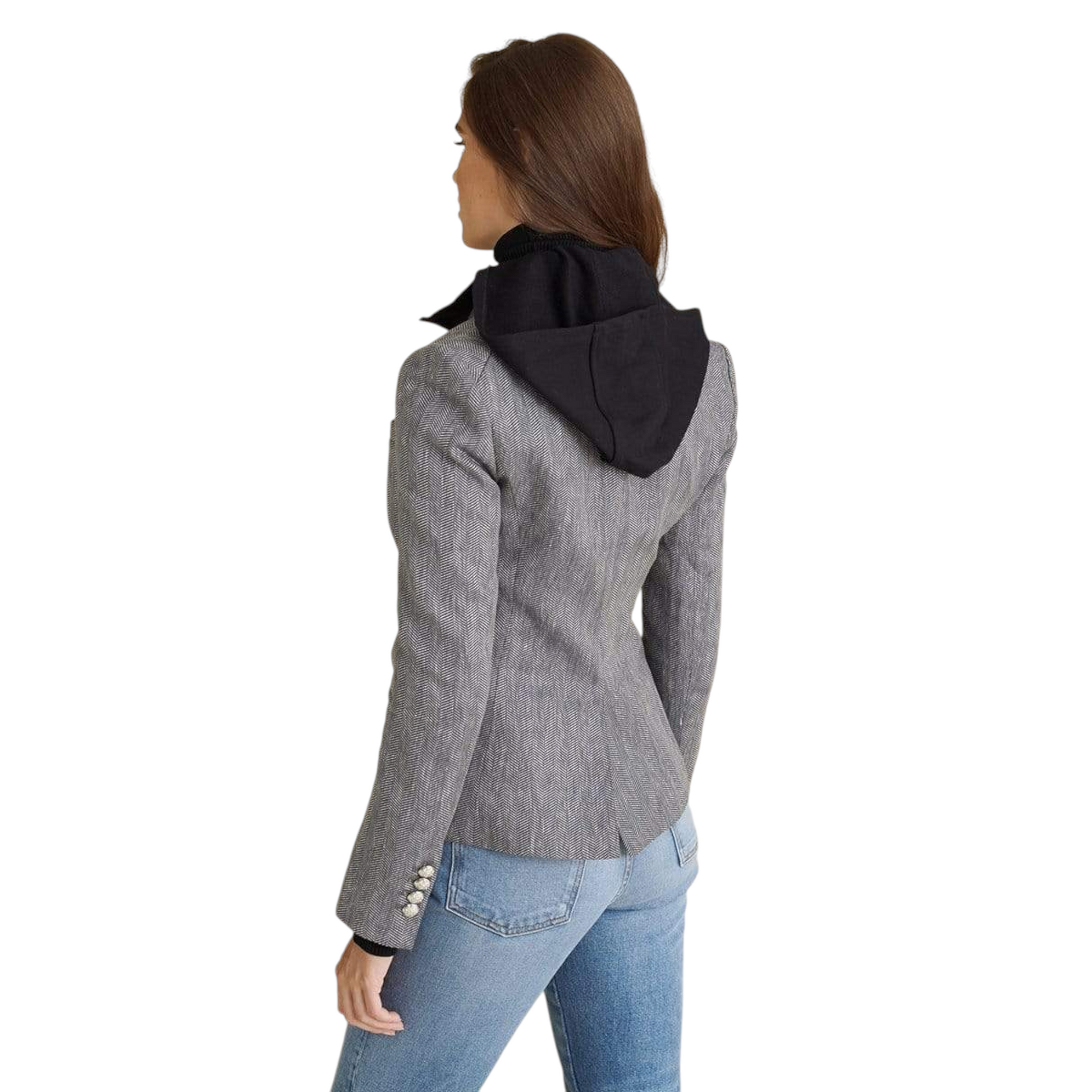 The black Veronica Beard Doni dickey features an oversized hood, creating a shawl-like effect when worn down around the shoulders. We love pairing this style with any of our dickey jackets for a casual-cool look.