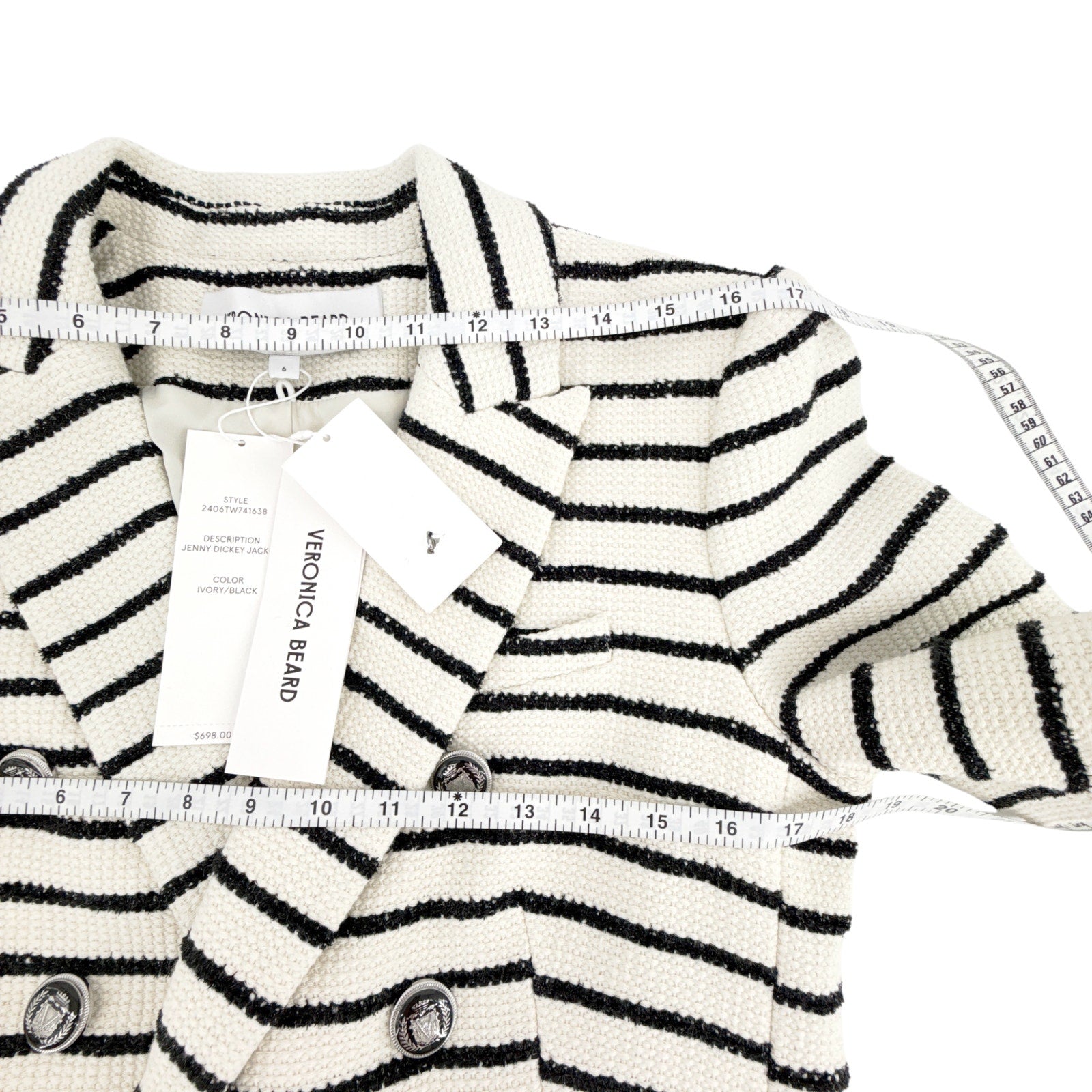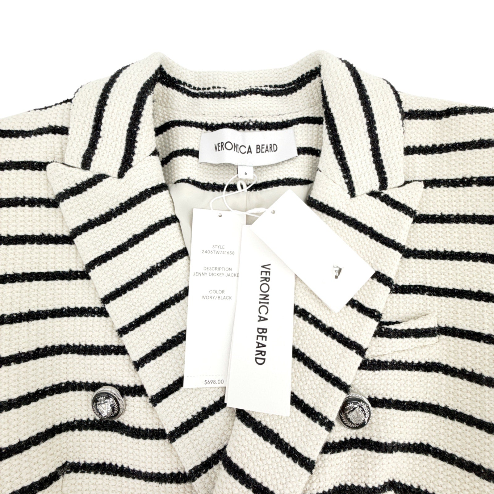 VERONICA BEARD Jenny Dickey Jacket in Ivory & Black Stripe 6|S