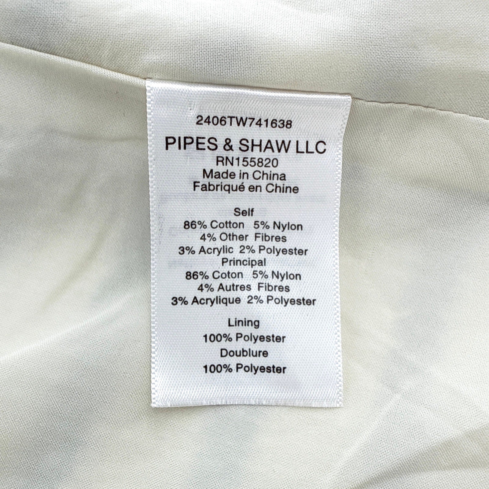 Self 86% Cotton, 5% Nylon, 4% Other Fibres, 3% Acrylic, & 2% Polyester