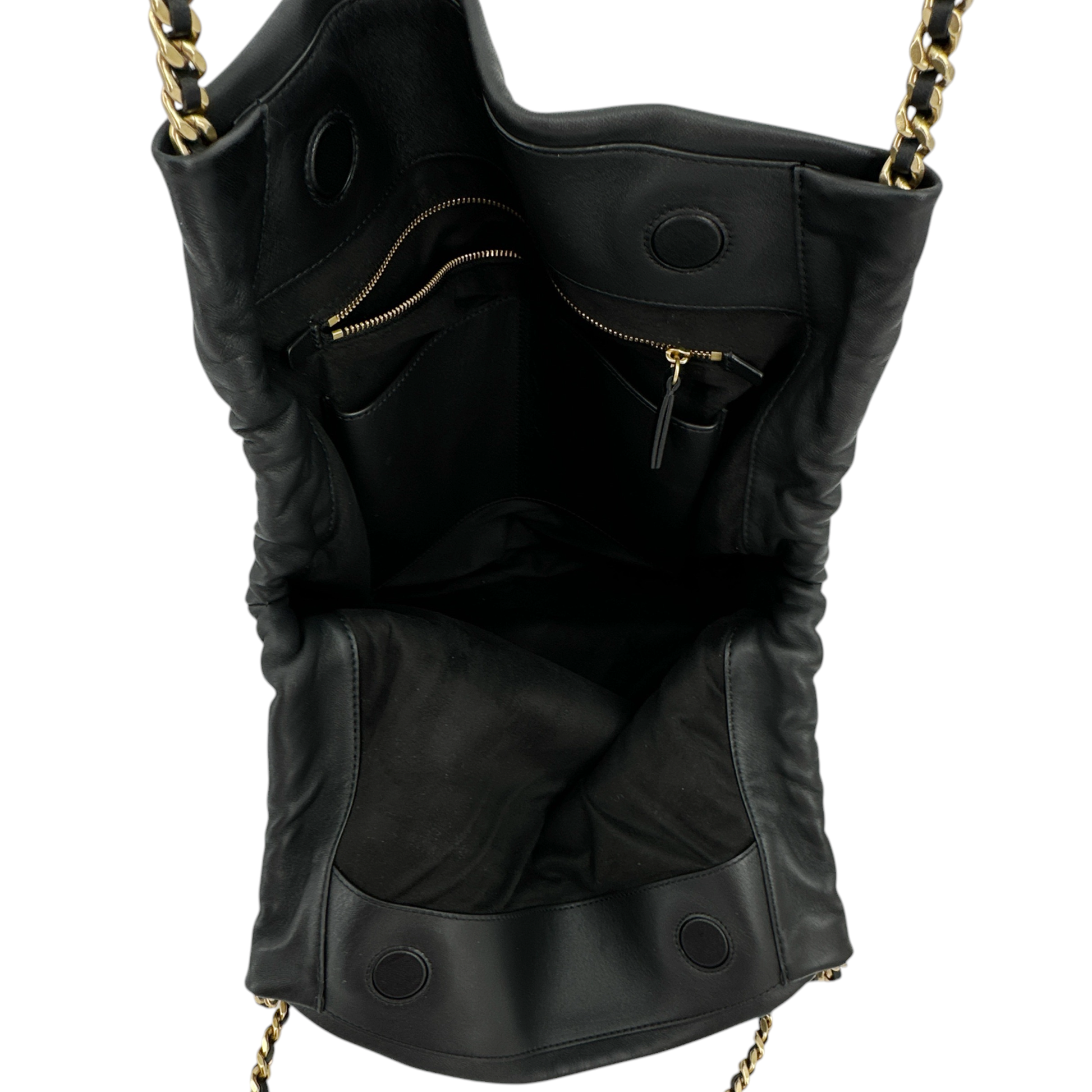 Crafted from supple leather, the aptly named Slouch is defined by its soft silhouette & slight gathering at the sides. The spacious interior is finished with generous pockets & a zip compartment while the gold chain-link strap adds glamorous edge. A cool classic for years to come.