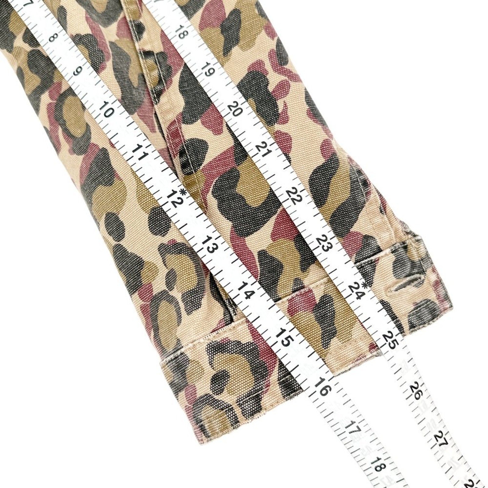 Rosette-like leopard spots offer a feisty alternative to camouflage on this rugged, military-inspired jacket.