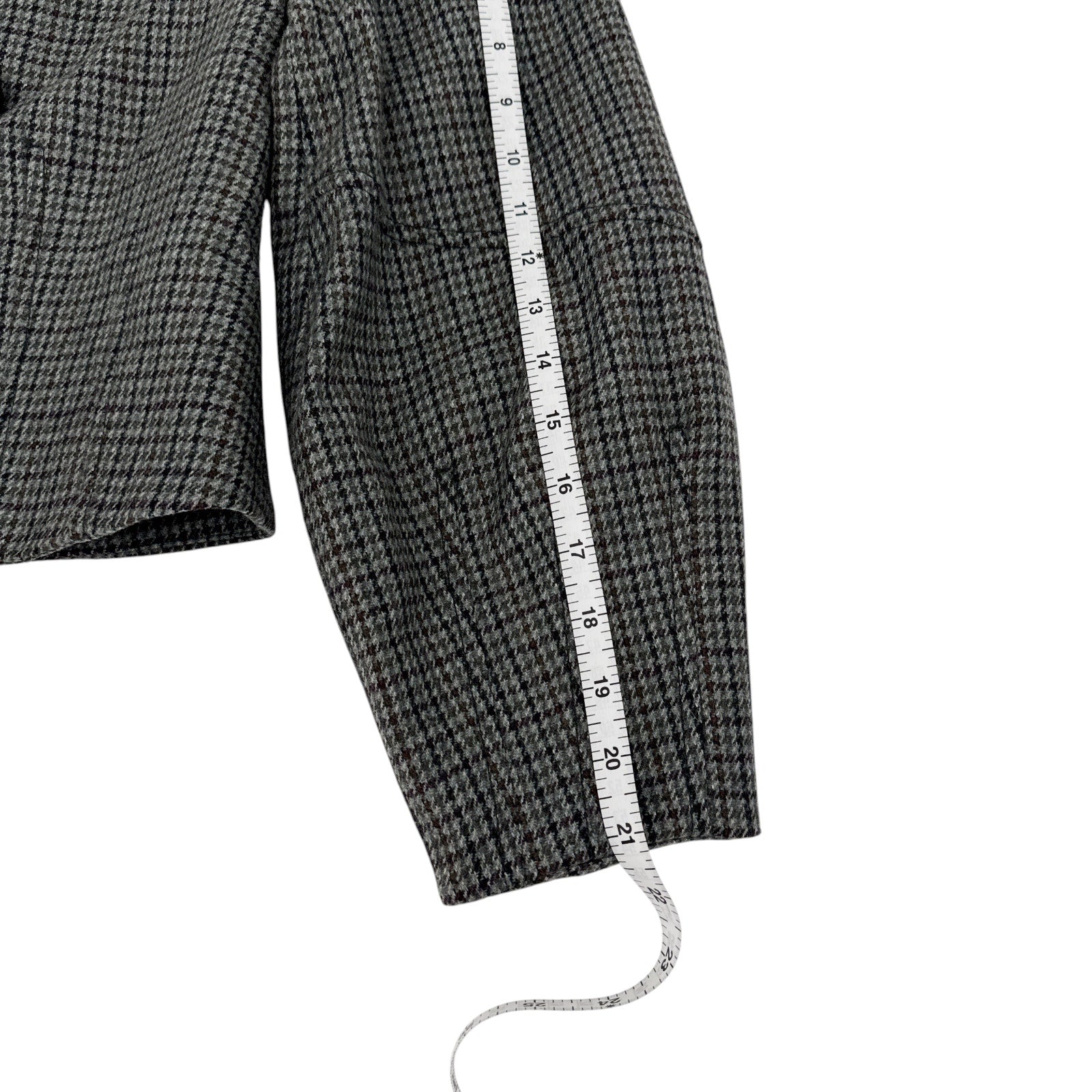 A cropped, boxy shape imparts an `80s sensibility to this tailored double-breasted jacket.